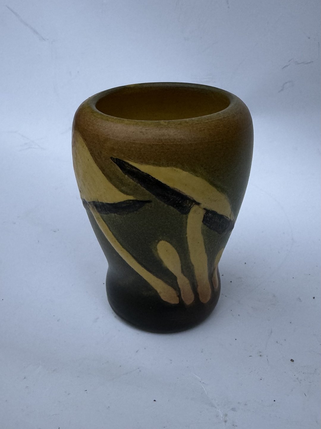 Mindre vase i keramik fra skønvirke-perioden fra den københavnske lervarefabrik Peter Ipsen. Dekoreret med svampe. I god stand. Fabriksmærket på bunden med P. Ipaen Kjøbenhavn samt modelbiler 435. H. 9,5 cm