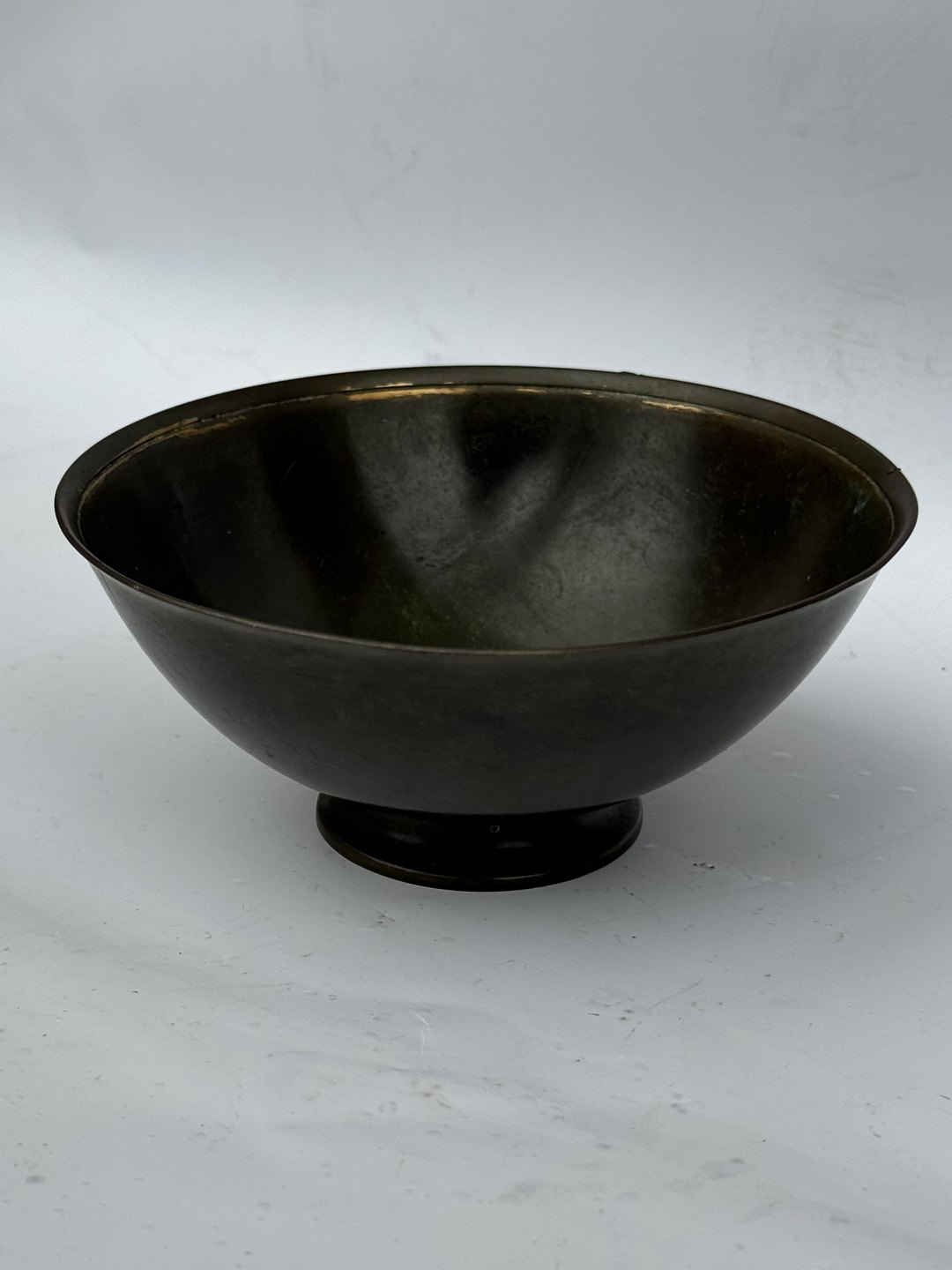 Just Andersen Let Bronze (LB). bronzepatineret skål på fod. Fremstillet på fabrikken omkring 1940. I god stand med få brugsspor. Fabriksmærket på bunden med det velkendte logo samt modelnummer LB 1337. Mål: H. 6 cmv/ Jesper Reutemann