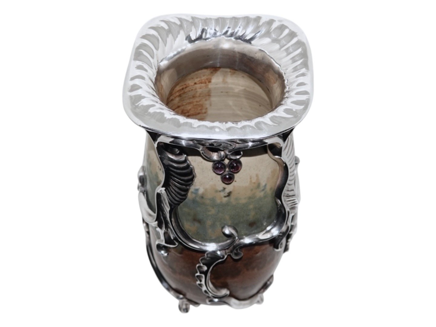 Stor Patrick Nordstrøm vase med ekstravagant sølvmontering