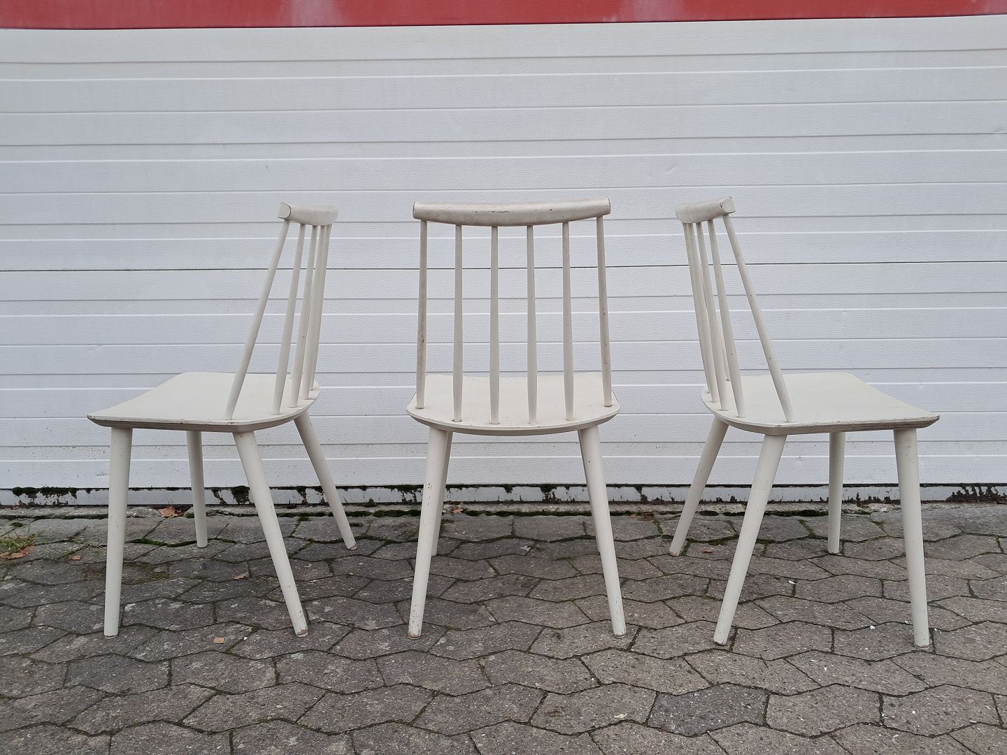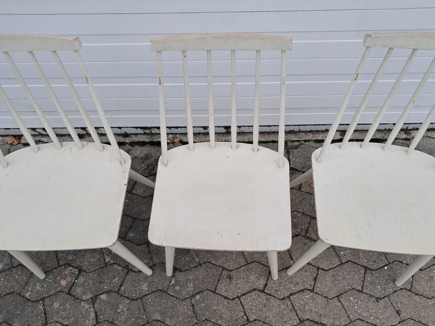 5 Stole i malet træ, fra 1990erne.De har brugsspor og terænger til at blive peppet op.