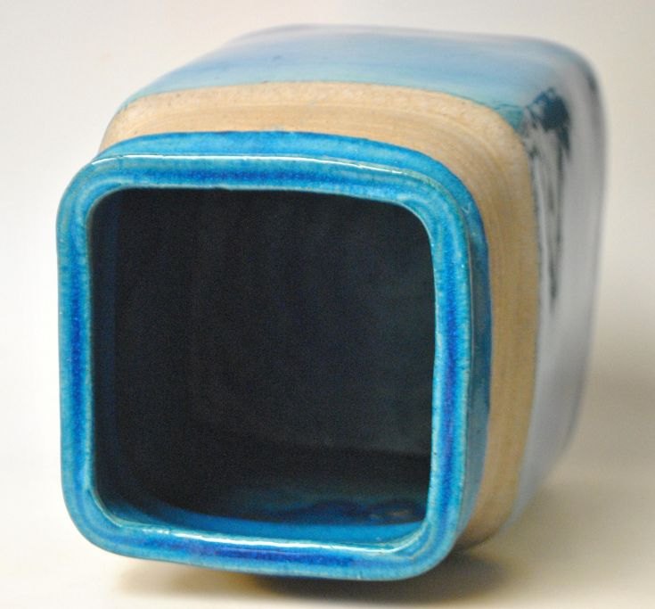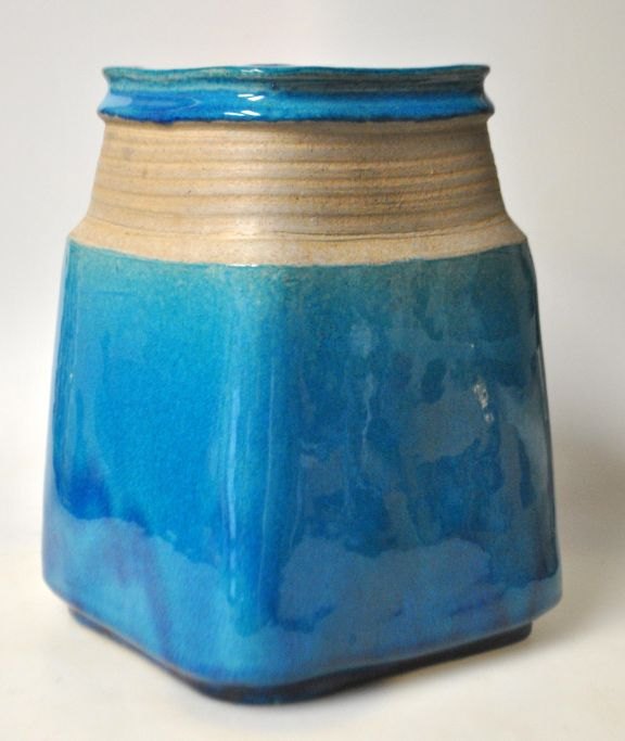 Kähler, Nils Joakim (1906 - 1979): Stort vase. Udført for H. A. Kähler, Næsteved. Turkis glasur. Med kantdekoration. Signeret. H: 23 cm. Dia.: 17 cm.Perfekt stand!