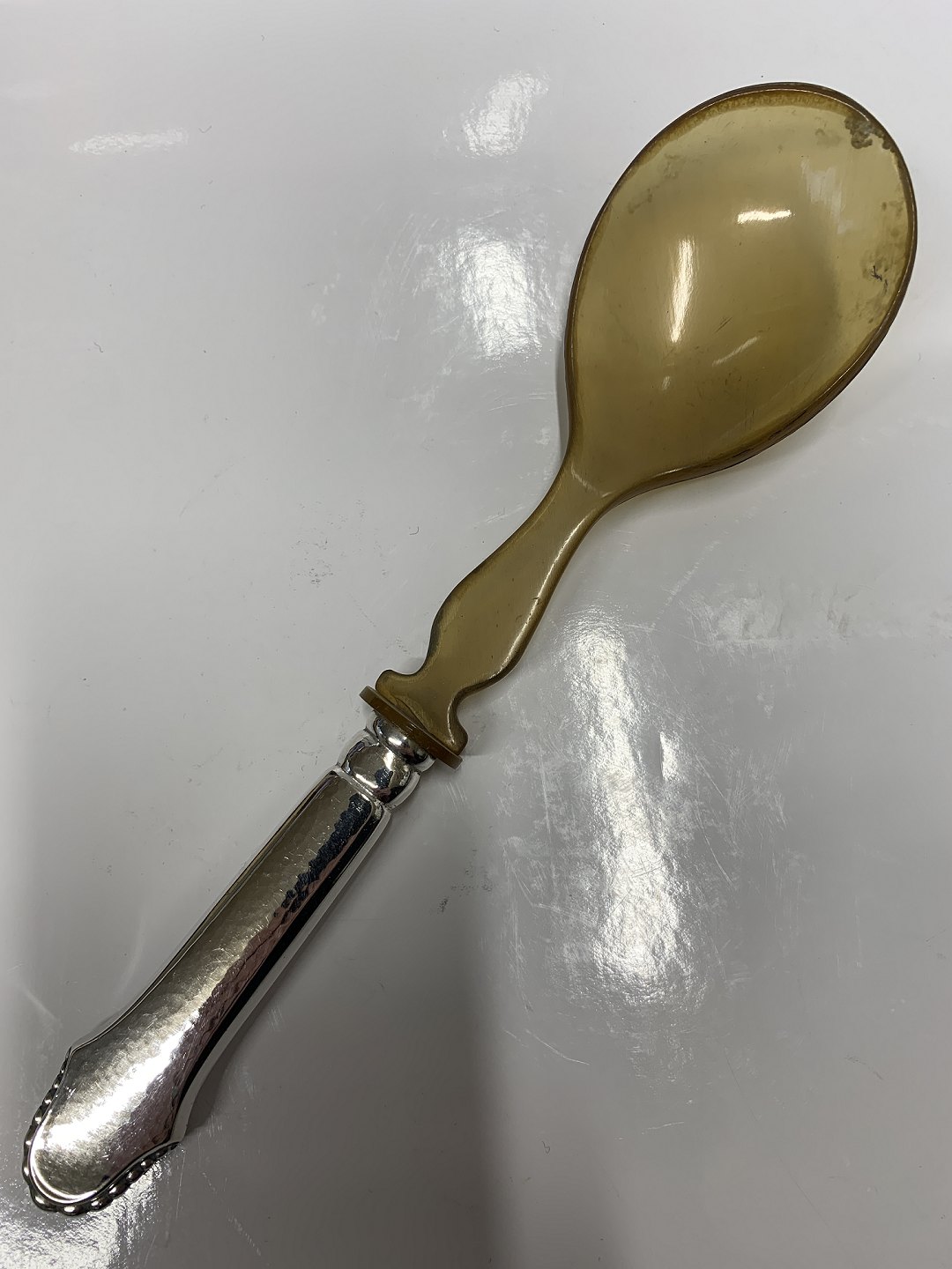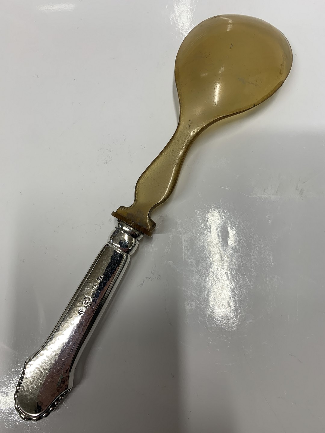 Christiansborg Sølv Surt ske med ben blad storToxværd