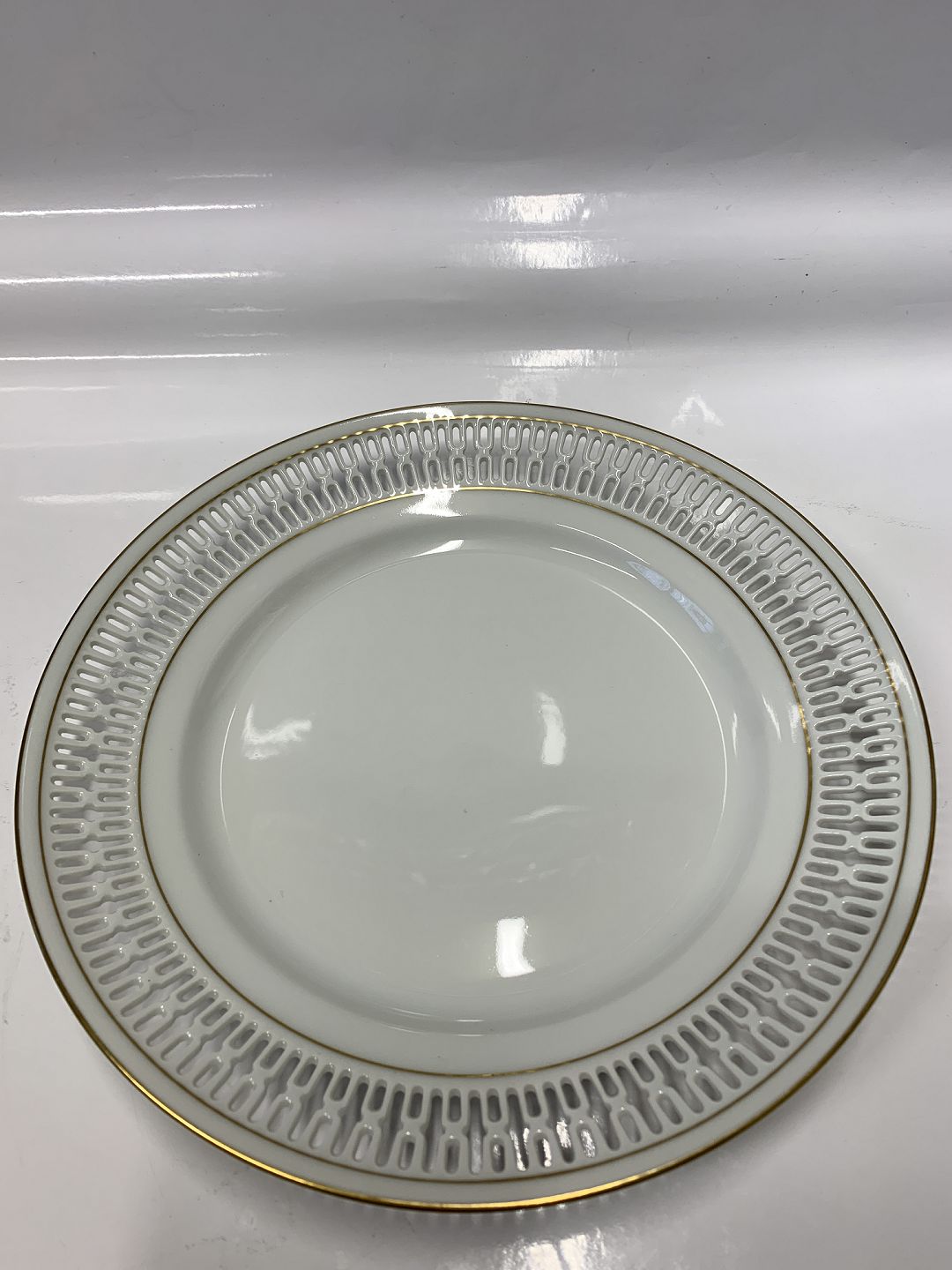 Bing & Grøndahl, Haga, Frokosttallerken med guld og gennembrudt kant.Dekorationsnummer 326