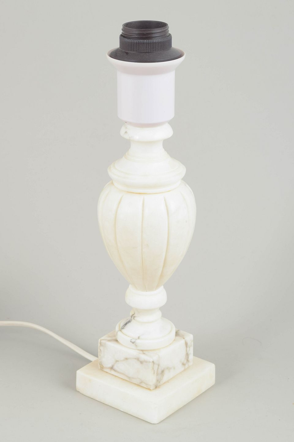 Italiensk Marmor bordlampe, 1970’erne.Klassisk formet bordlampe udført i hvid marmor med elegant profileret fod og balusterformet korpus. Den matte, naturlige stenstruktur giver lampen et tidløst, sofistikeret udtryk.