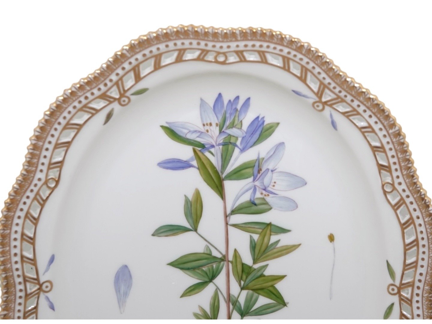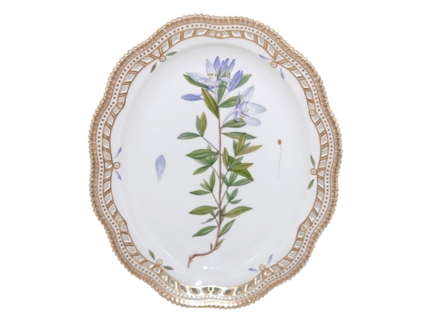 Royal Copenhagen Flora Danica, lille ovalt fad med gennembrudt kant.Dekorationsnummer 20/3537.