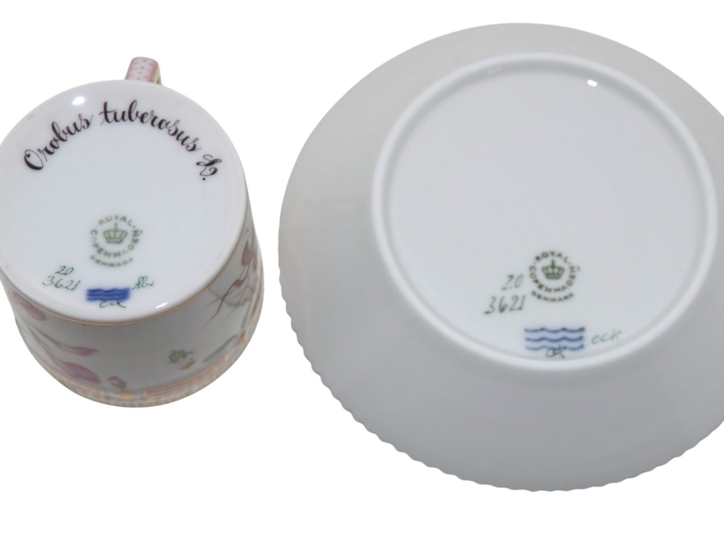 Royal Copenhagen Flora Danica, lille tøndeformet espressokop med tilhørende underkop.