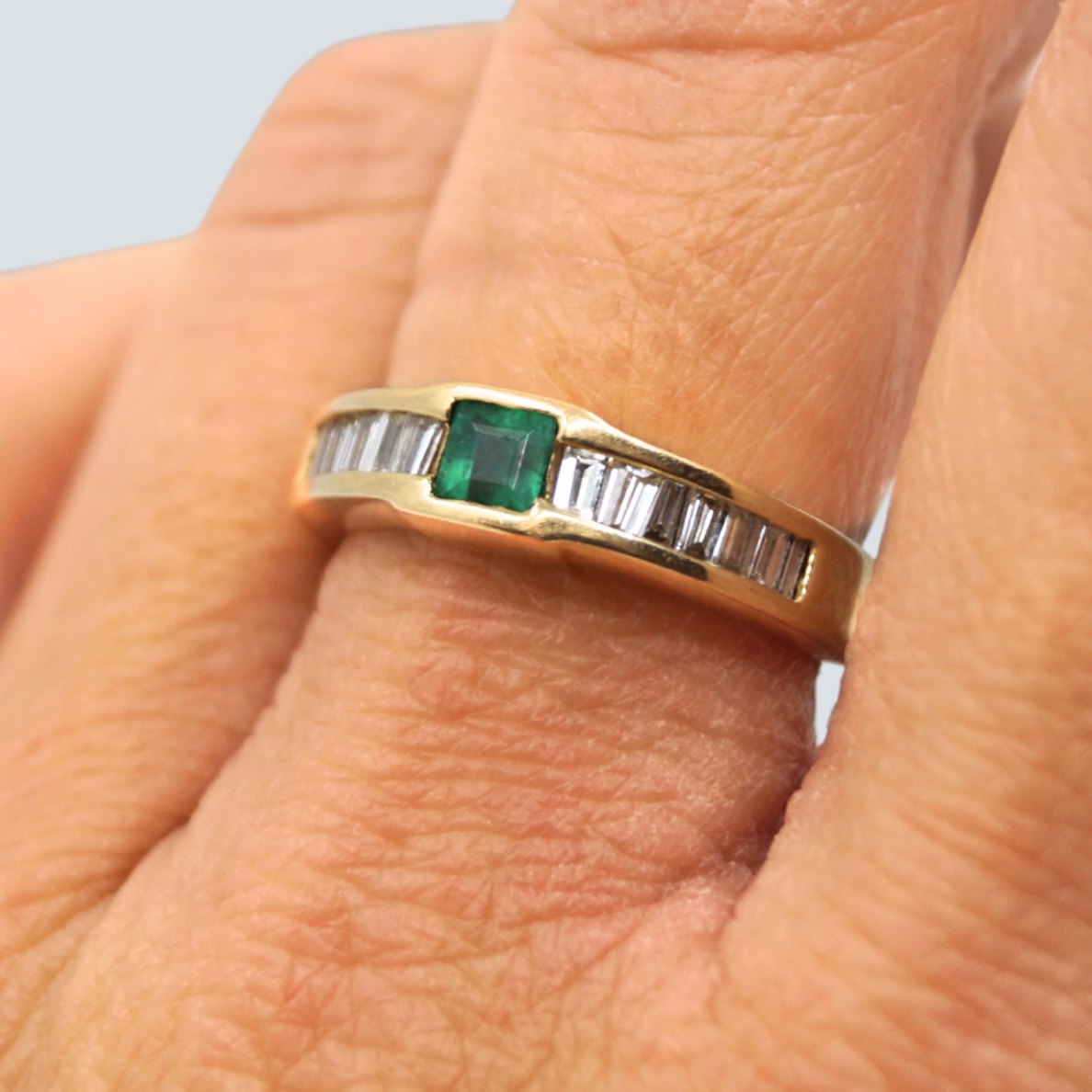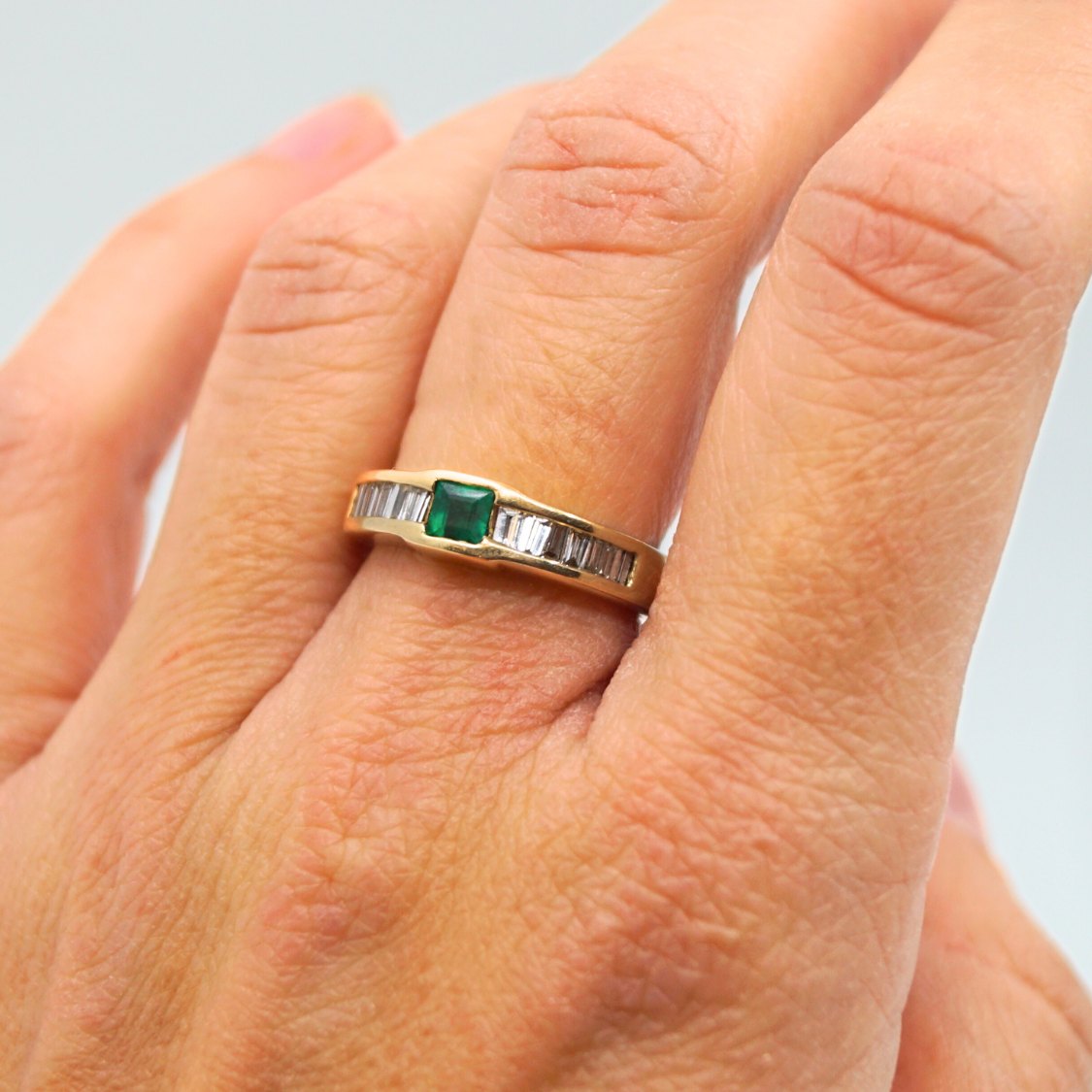 Ring i 18 kt. guld, prydet med smaragd og diamanter, i alt 0.40 ct. Top Wesselton VS. Ring str. 51,5.Stemplet "750".