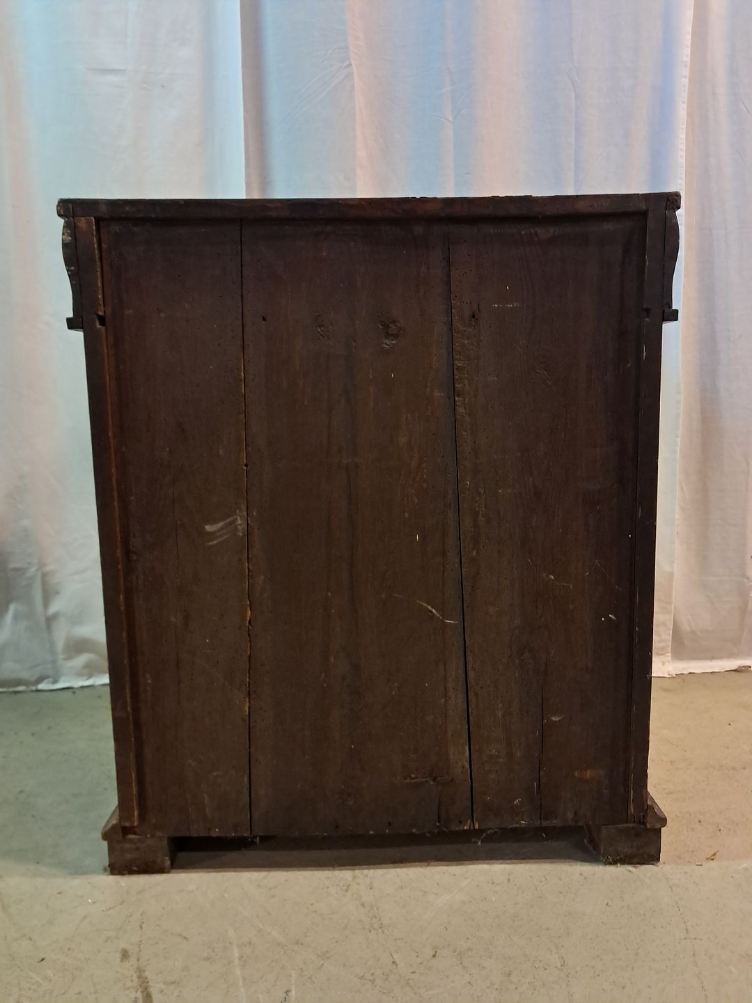 Skab i fineret mahogni, fra 1900erne.Det har brugsspor og finer defekter.