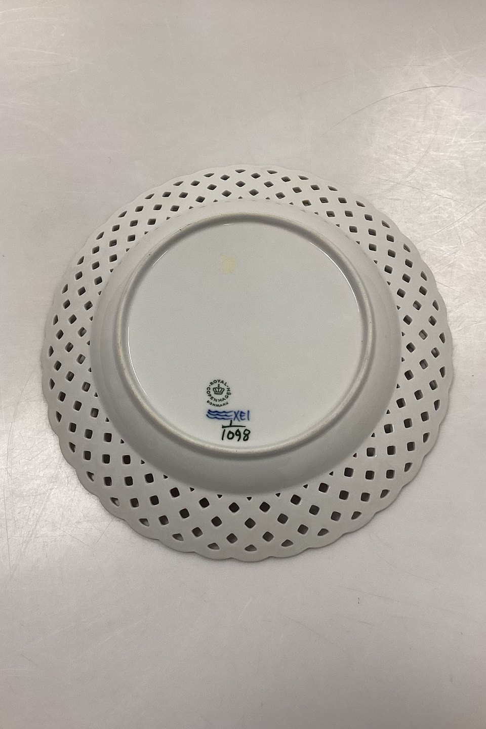 Royal Copenhagen Musselmalet Helblonde med gennembrudt kant Flad Tallerken No. 1/1098.Måler 25,5 cm / 10.04 in. 1. Sortering med glasurfejl, se foto.