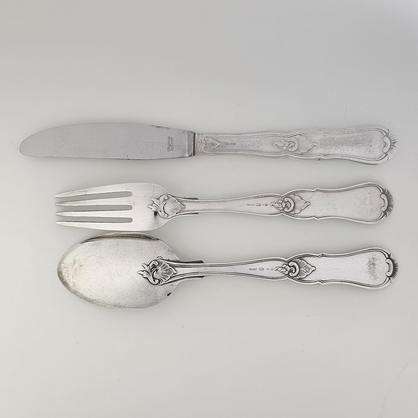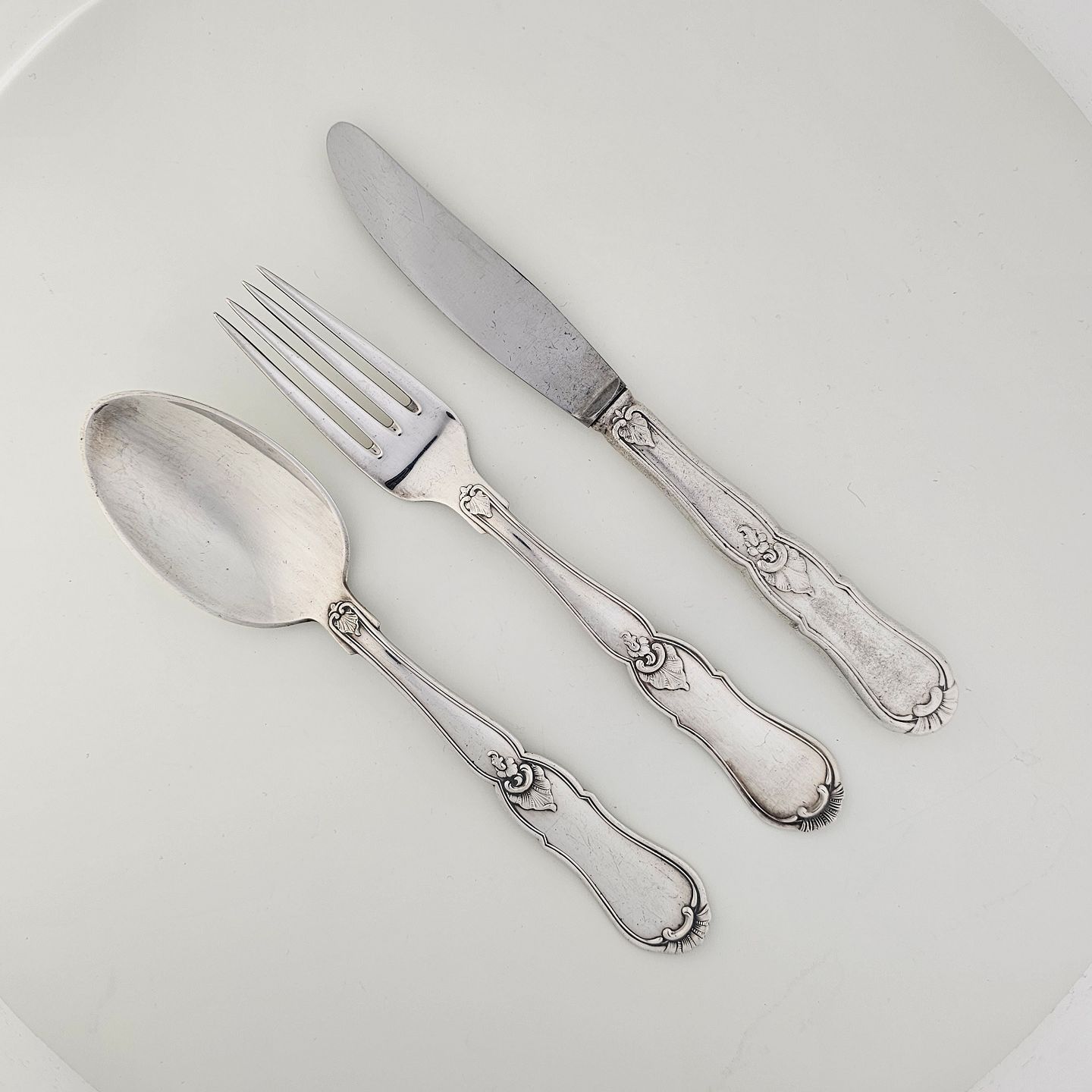 Bestik i sølvplet med navnet Marianne
