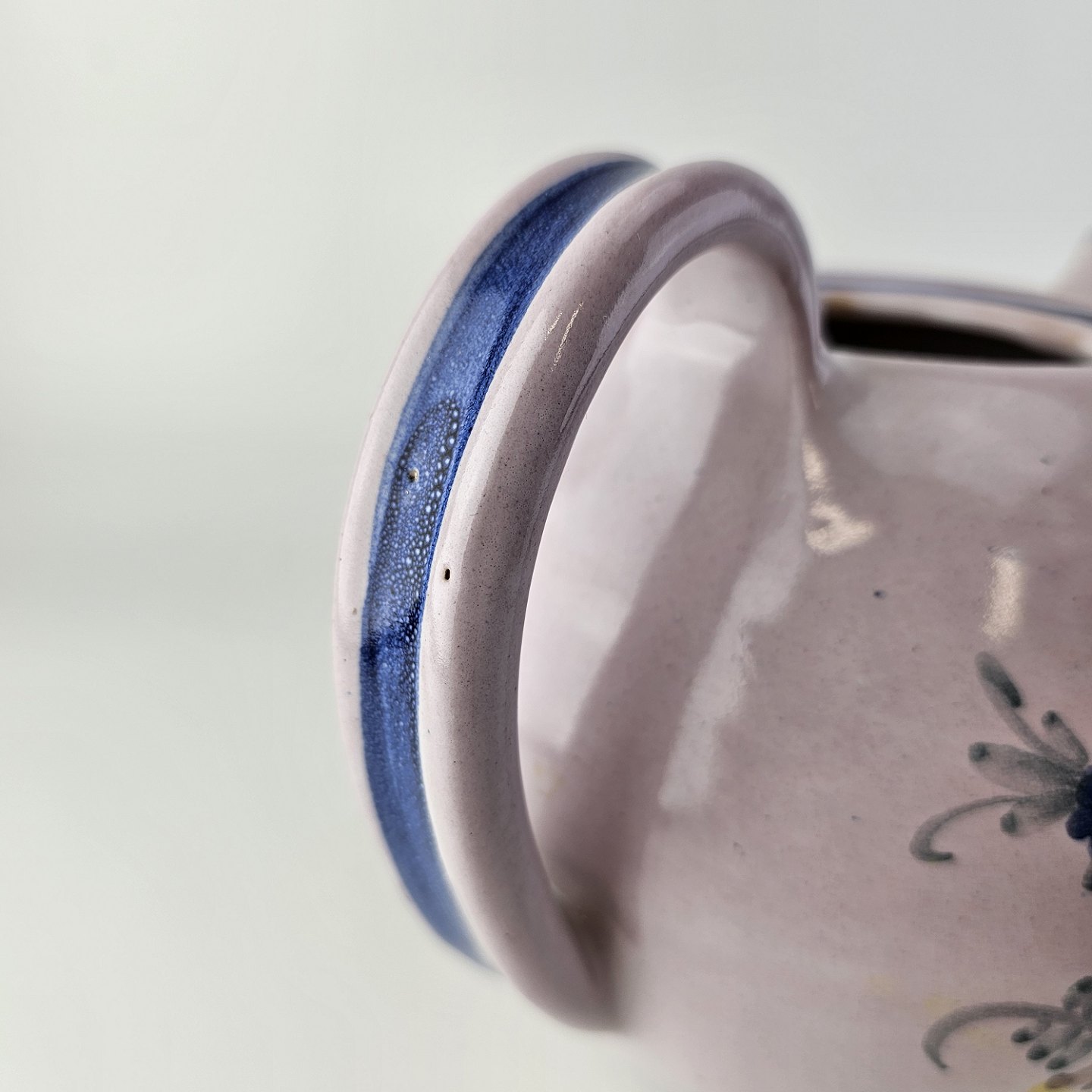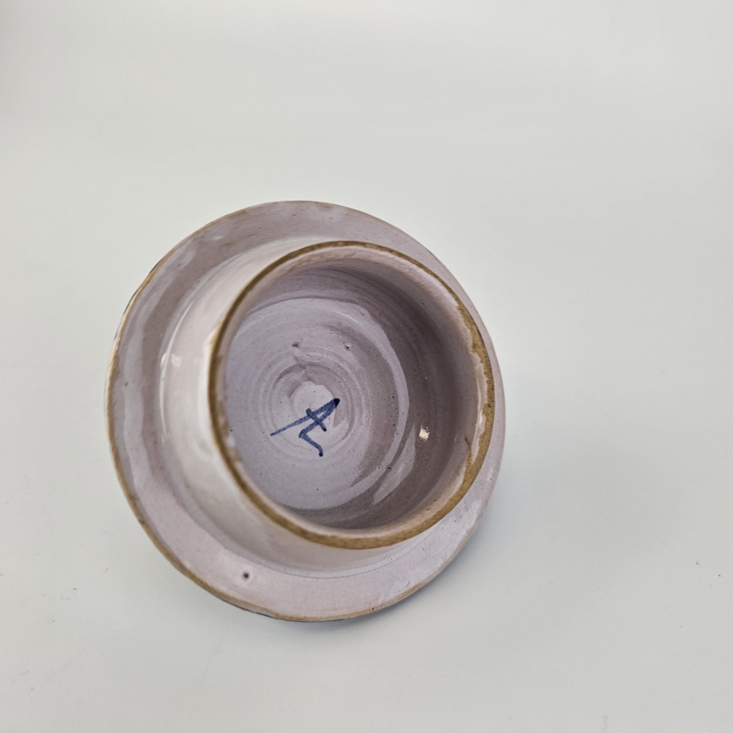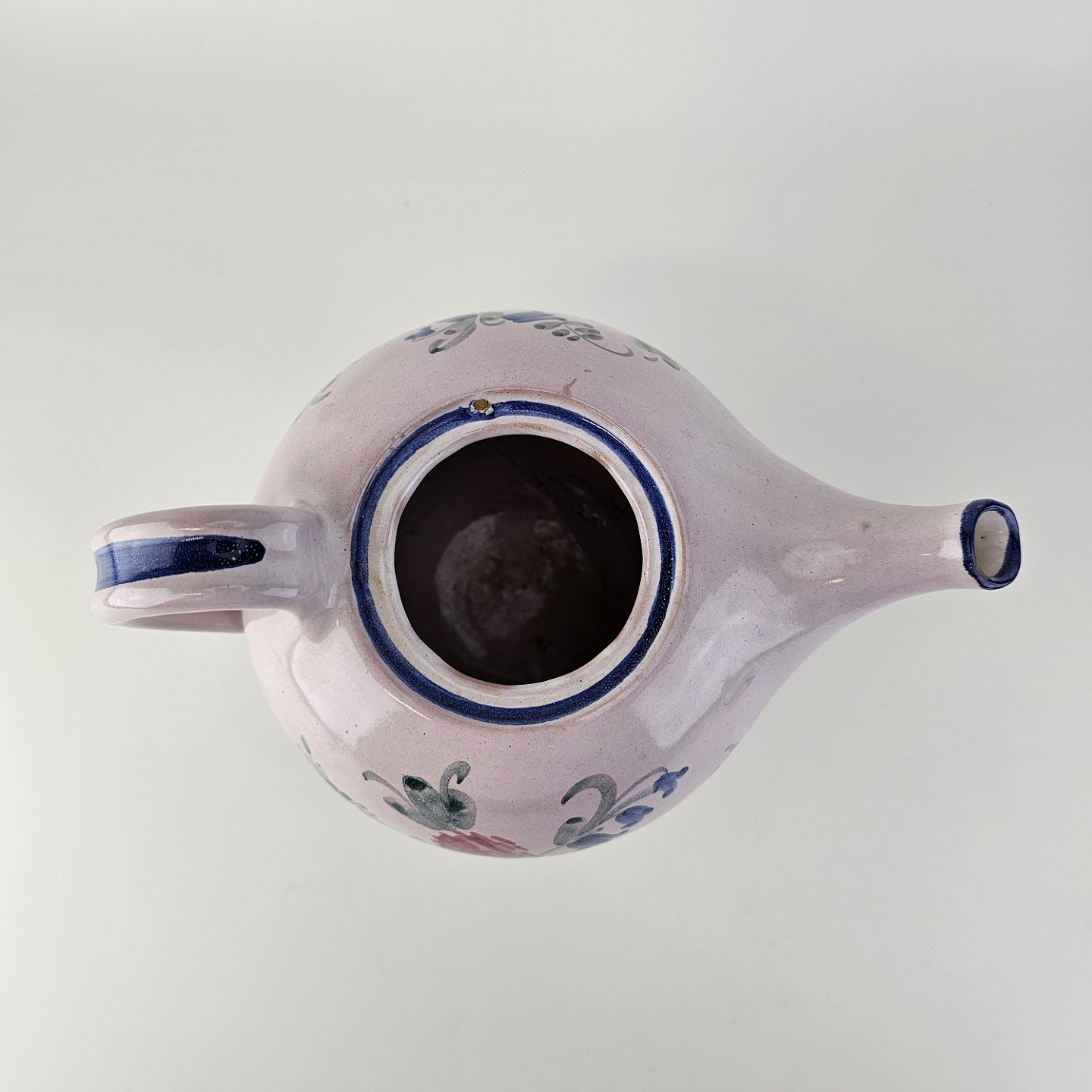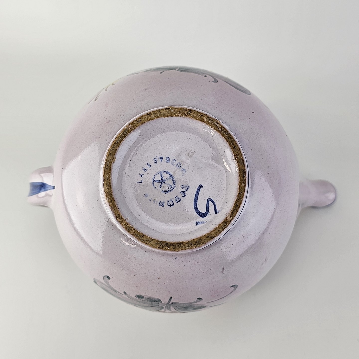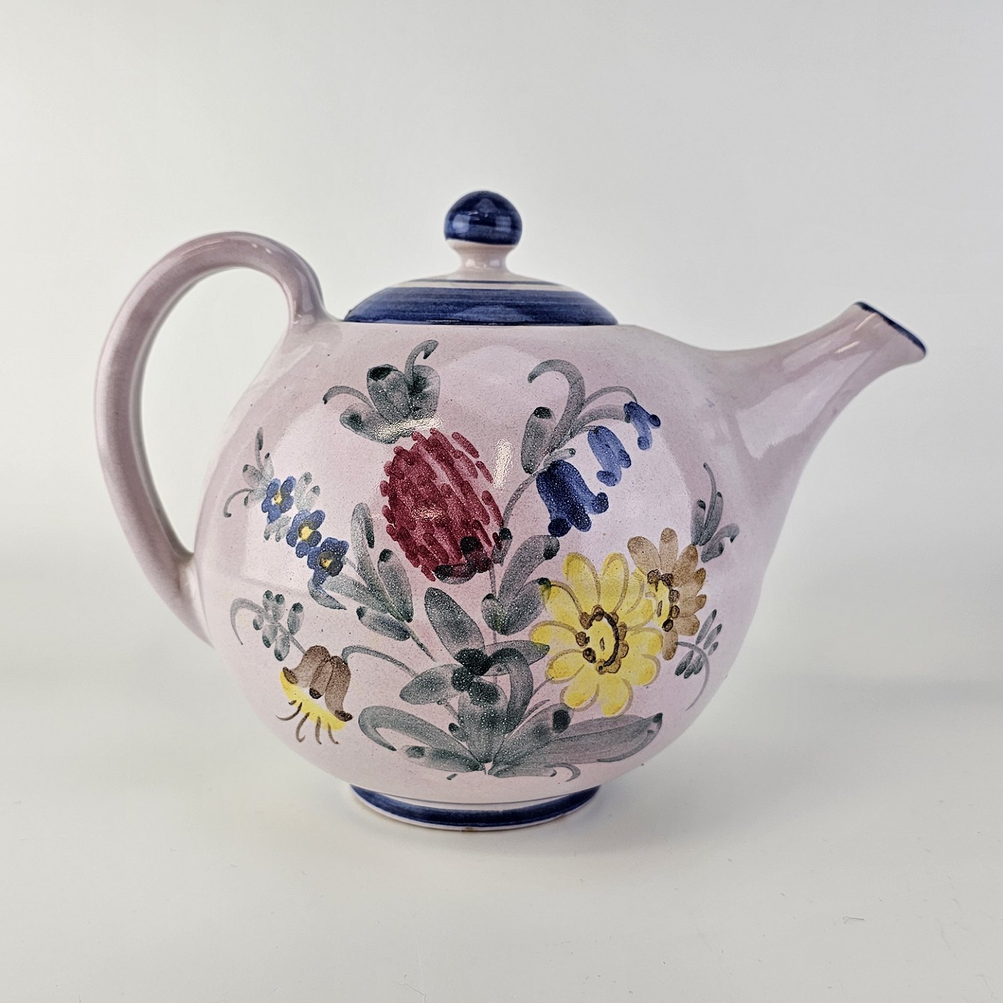 Håndlavet tekande i keramik. Rosa med blå detaljer og blomsterdekorationProducent Lars Syberg keramik