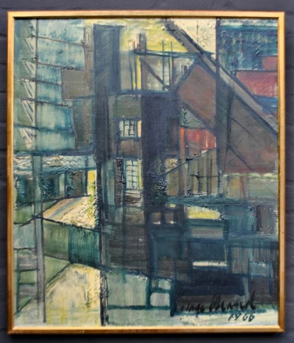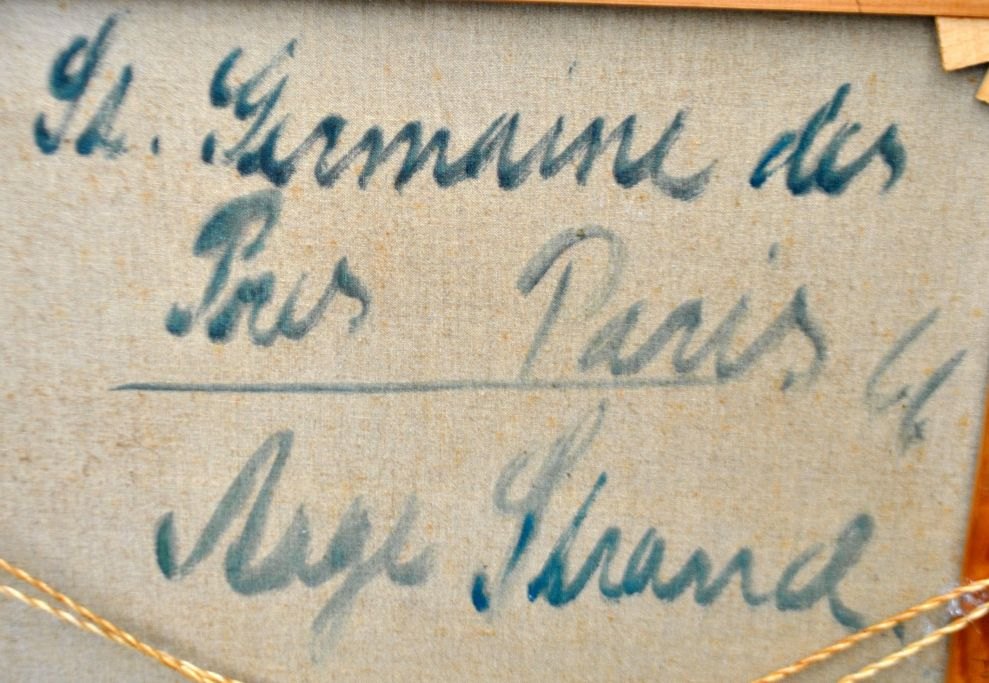 Strand, Aage (1910 - 1975) Danmark: St. Germain des Pres Paris, 1966. Olie på lærred. Signeret: Aage Strand 1966. H: 70 cm. B: 60 cm.Indrammet: H: 73 cm. B: 62,5 cm.