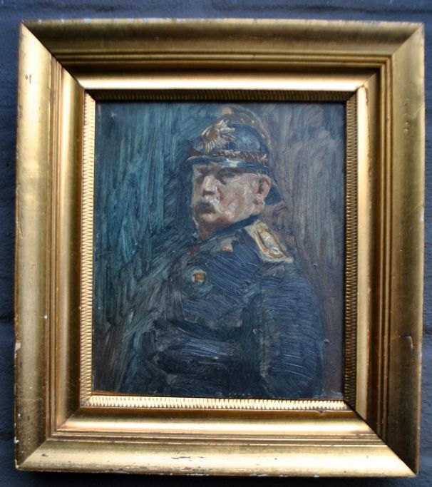Hansen, Hans Nicolaj (1853 - 1923) Danmark: Portræt af Vicebranddirektør, kaptajn August Carlsen. Olie på pap. Værket er verso betegnet 1891. 19 x 16,5 cm.Indrammet: 25 x 22,5 cm.