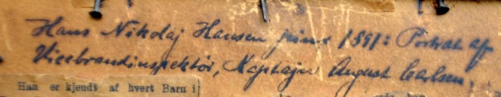 Verso udklip fra artikel i avisen "Dannebrog" den 31. juli 1895 om August Carlsen, der havde en fortid i marinen og som kaptajn. I 1870 indtrådte han i brandkorpset, hvor han senere forfremmedes til vice brandinspektør.