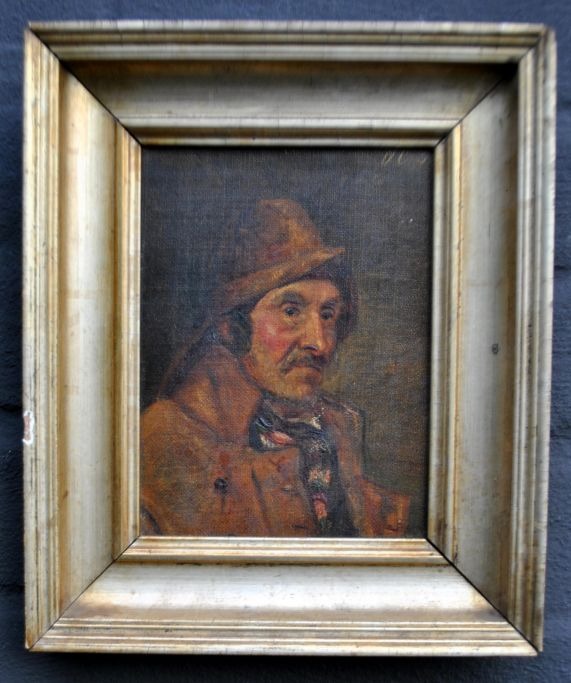 Carlsen, Oscar Conrad (1840 - 1864) Danmark: Portræt af en fisker. Olie på lærred/pap. Signeret: O.C 1856. 15 x 11 cm.Indrammet i en antik sølvramme: 23,5 x 19,5 cm.