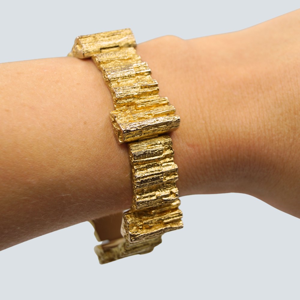 Björn Weckström for Lapponia; Leddelt armbånd af seks led i 14 kt. guld. Designet af Björn Weckström omkring 1970. L. 18 cm. b. 1,3-1,8 cm. Monteret med kasselås og sikkerhedslås. Stemplet "585 Finland Bjorn Lapponia"Björn Weckström,