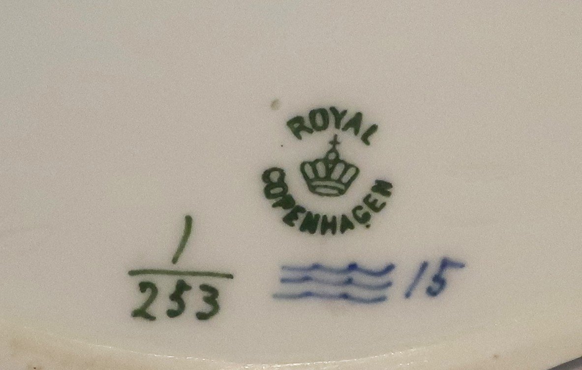 Royal Copenhagen. Musselmalet, riflet. Tekande. Model 253. Højde 13 cm. Længde 22 cm. (2 sortering). Produceret før 1923 Udstiller