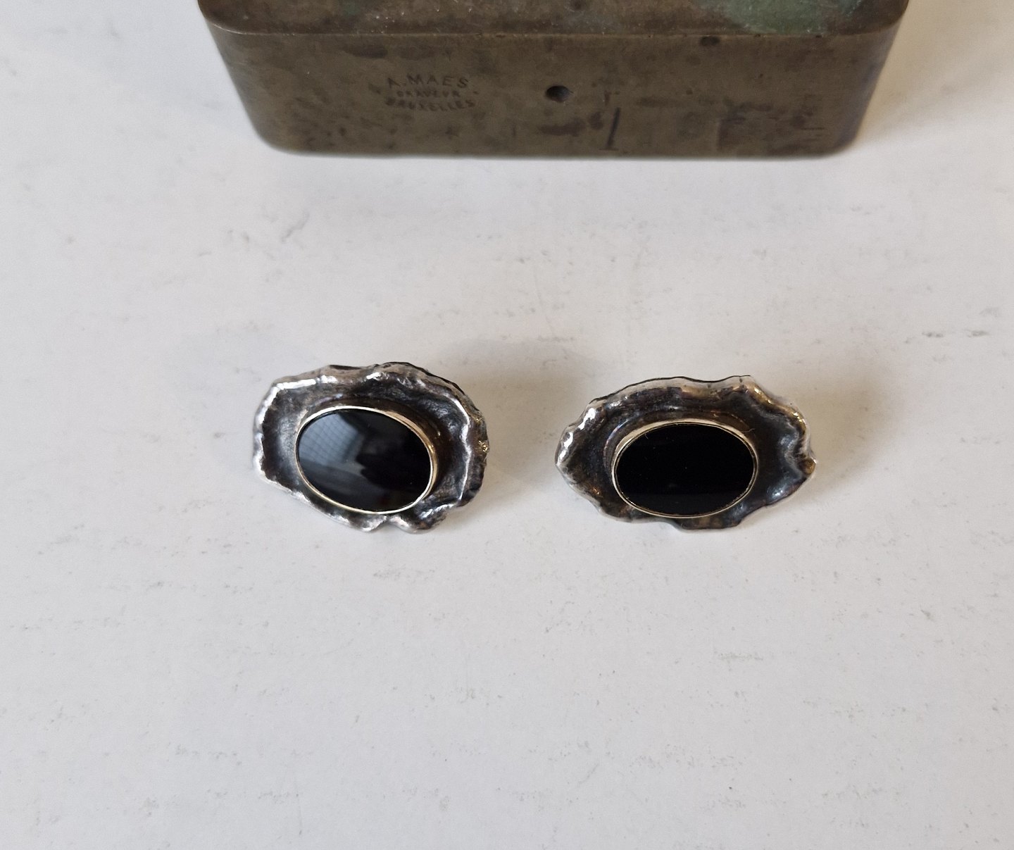 Par store ørestikker i sterlingsølv med onyx af Niels Gunni VaseStemplet: Vase - 925 - Håndarbejde