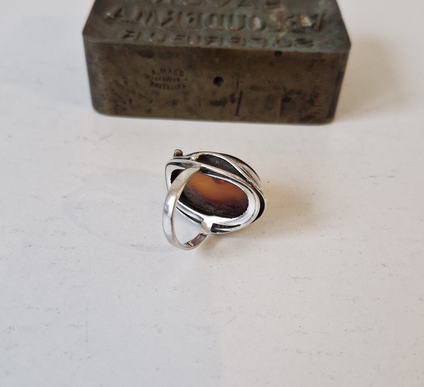 Smuk sølvring med ravRingen er ikke stemplet men testet til sterlingsølv