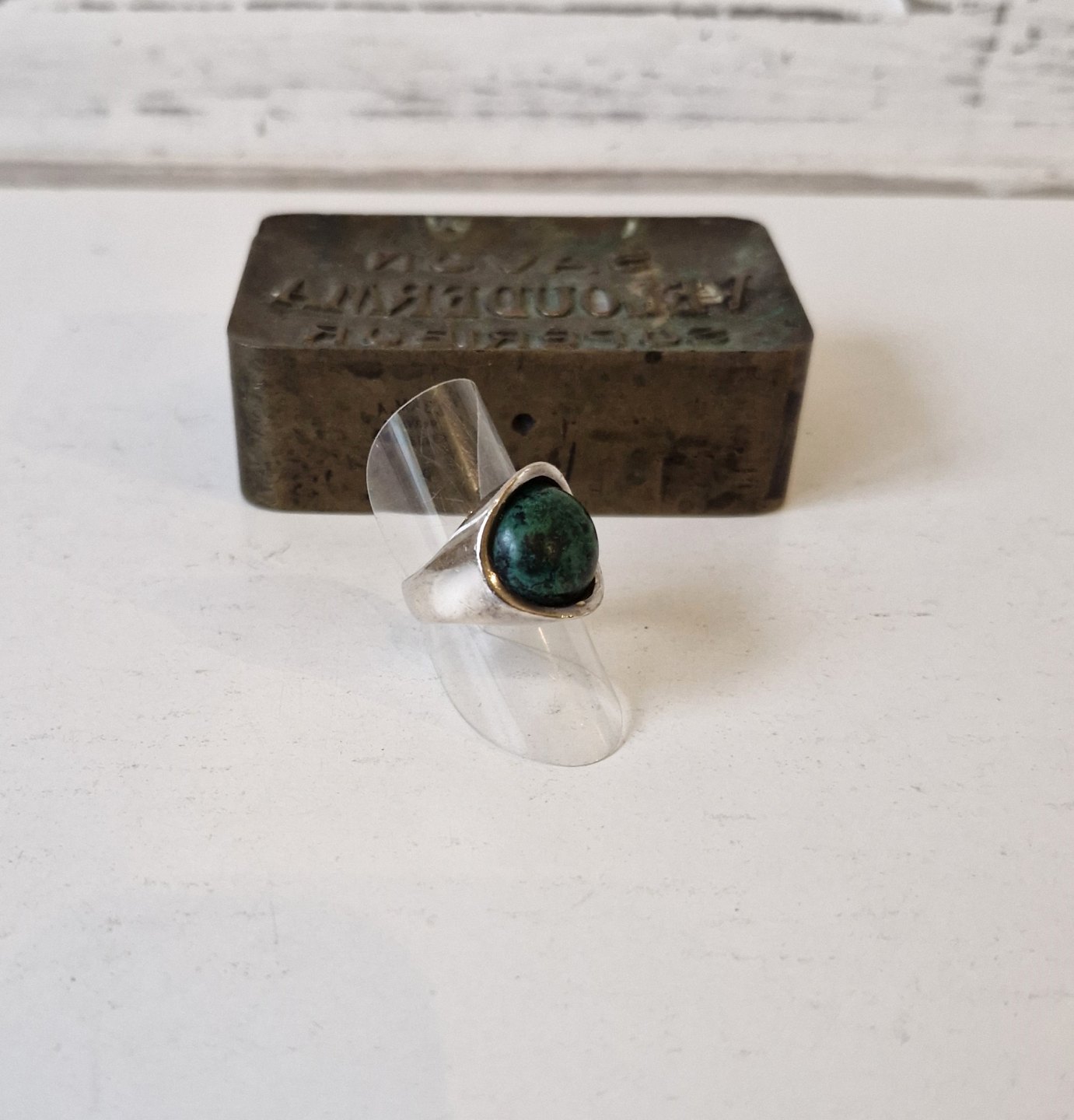 Vintage sølv ring med malakitStemplet: EE - 925