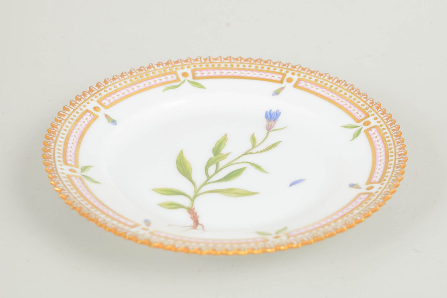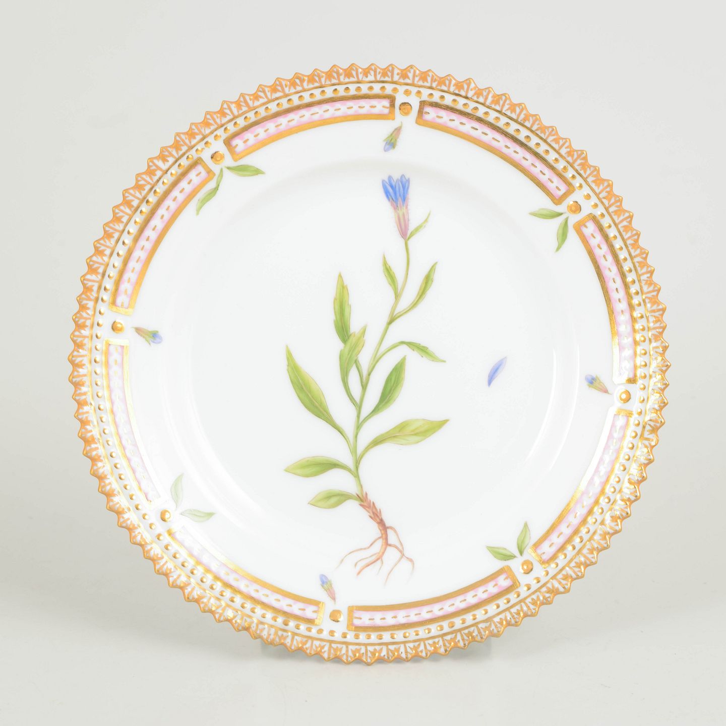 Bio: Flora Danica-stellet blev introduceret i 1790 og regnes blandt Royal Copenhagens mest prestigefyldte produktioner. Dekorationerne er baseret på det monumentale botaniske værk Flora Danica og er kendetegnet ved høj detaljerigdom og fremragende håndværksmæssig kvalitet. Mindre dele som sidetallerkener har traditionelt været anvendt til dessert eller mindre anretninger og er i dag eftertragtede samlerobjekter.