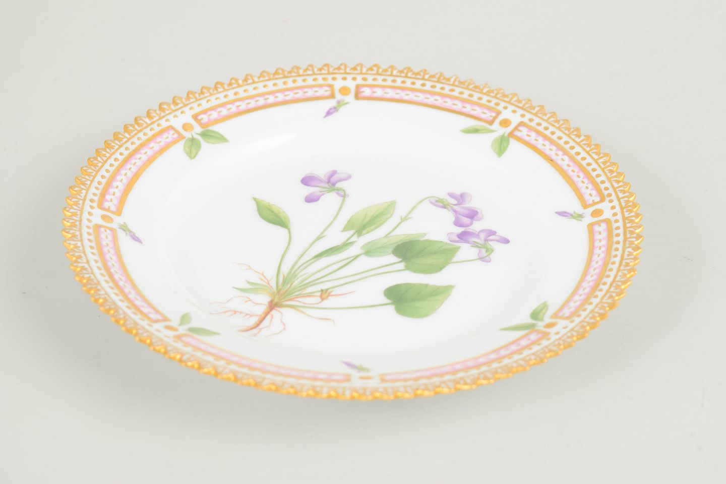 Bio: Flora Danica-stellet blev introduceret i 1790 og regnes blandt Royal Copenhagens mest prestigefyldte produktioner. Dekorationerne er baseret på det monumentale botaniske værk Flora Danica og er kendetegnet ved høj detaljerigdom og fremragende håndværksmæssig kvalitet. Mindre dele som sidetallerkener har traditionelt været anvendt til dessert eller mindre anretninger og er i dag eftertragtede samlerobjekter.