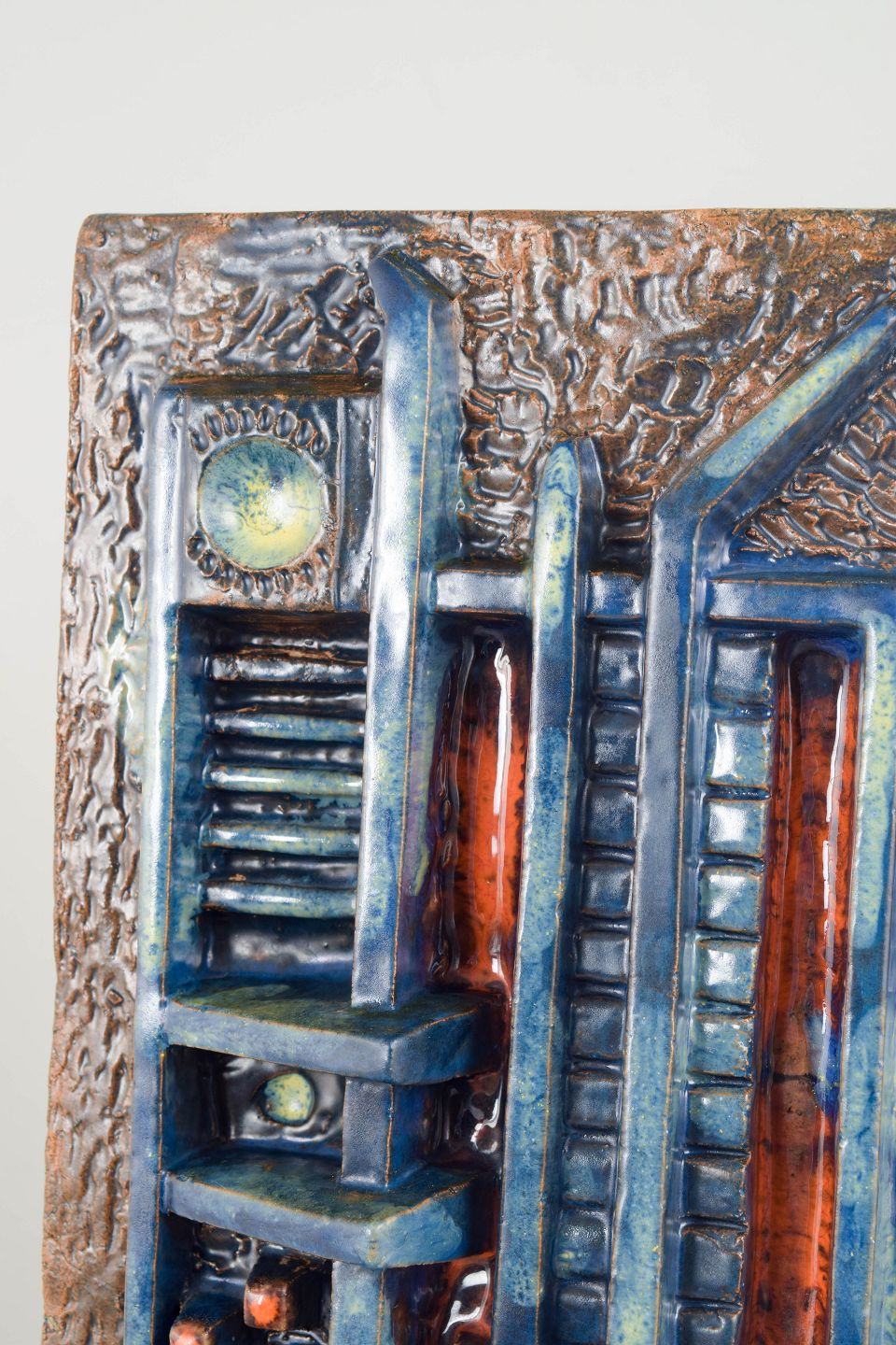 European studio ceramics of the 1970s were marked by experimental and often sculptural expressions, drawing clear inspiration from architecture and brutalist design. Wall reliefs such as this occupy the boundary between art and craft and were typically produced as unique works or in very small series, making them highly collectible today.
