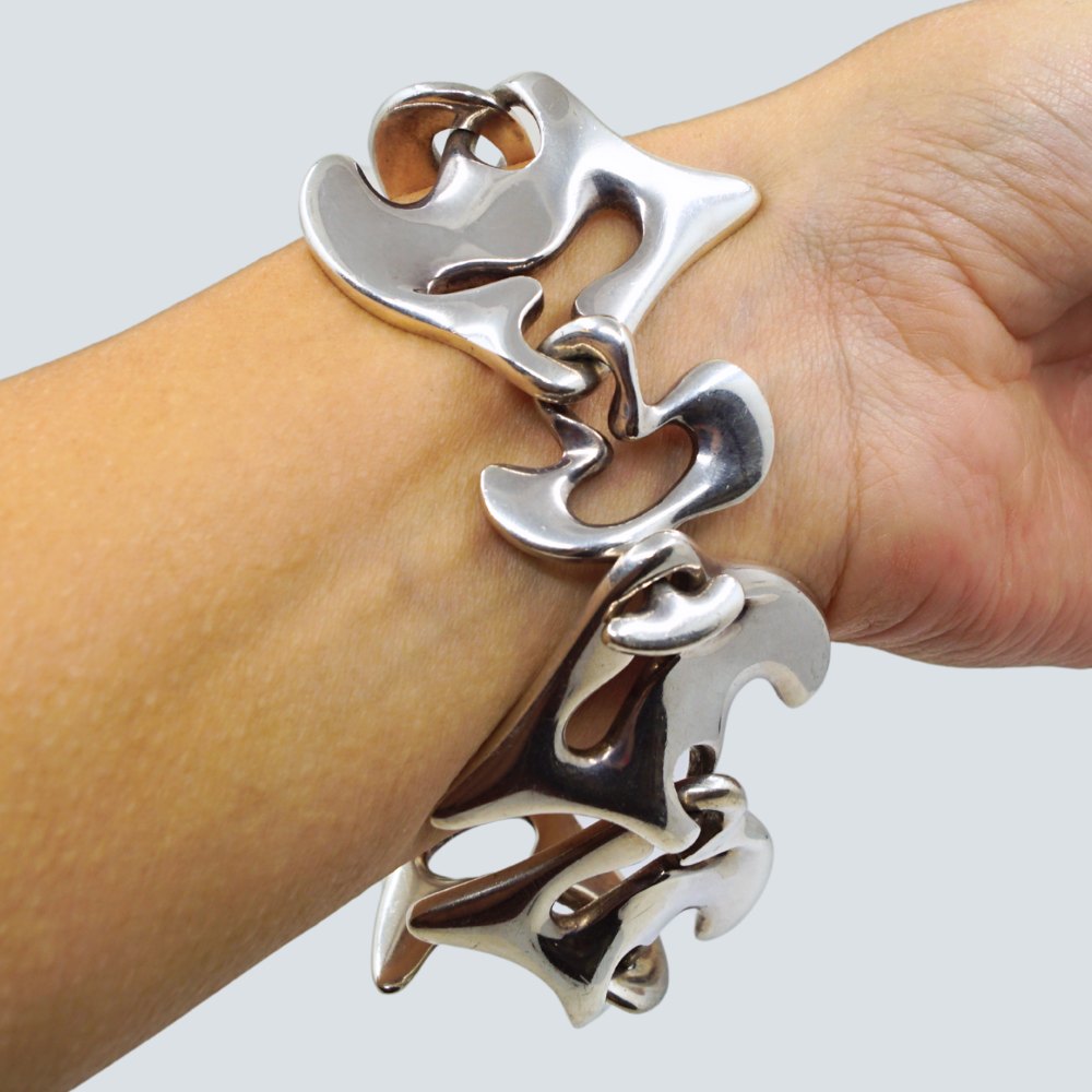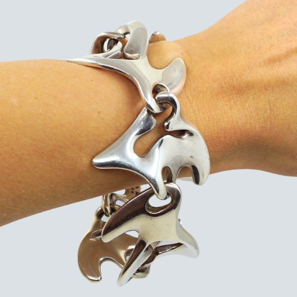 Amøbe armbånd i sterlingsølv. Sammensat at seks led + låseled.