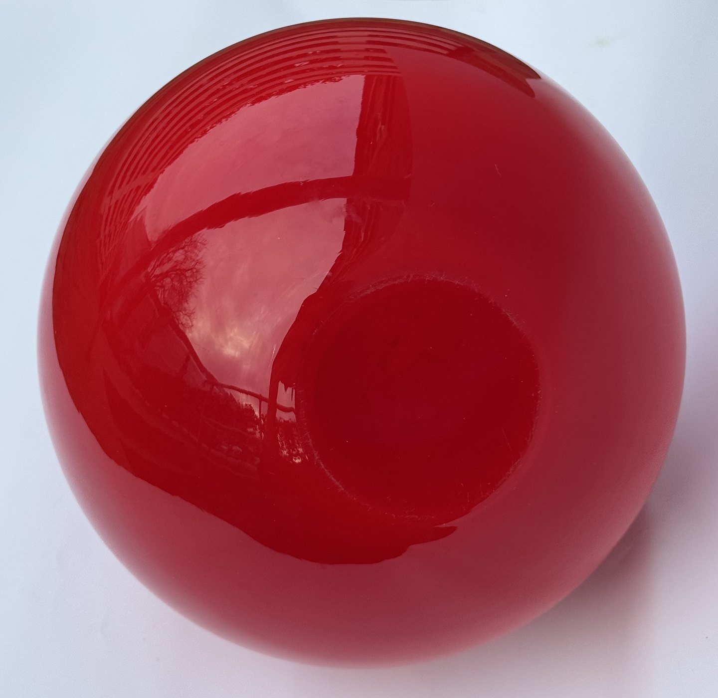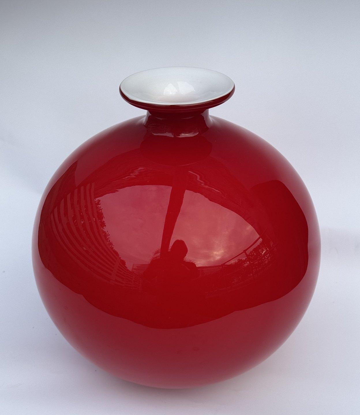 RØD & HVID: Stor rund Carnaby glass vase fra Holmegaard / Kastrup glasværk designet af Per Lütken. 1. sortering. I god stand. Mål: H. 20 cm