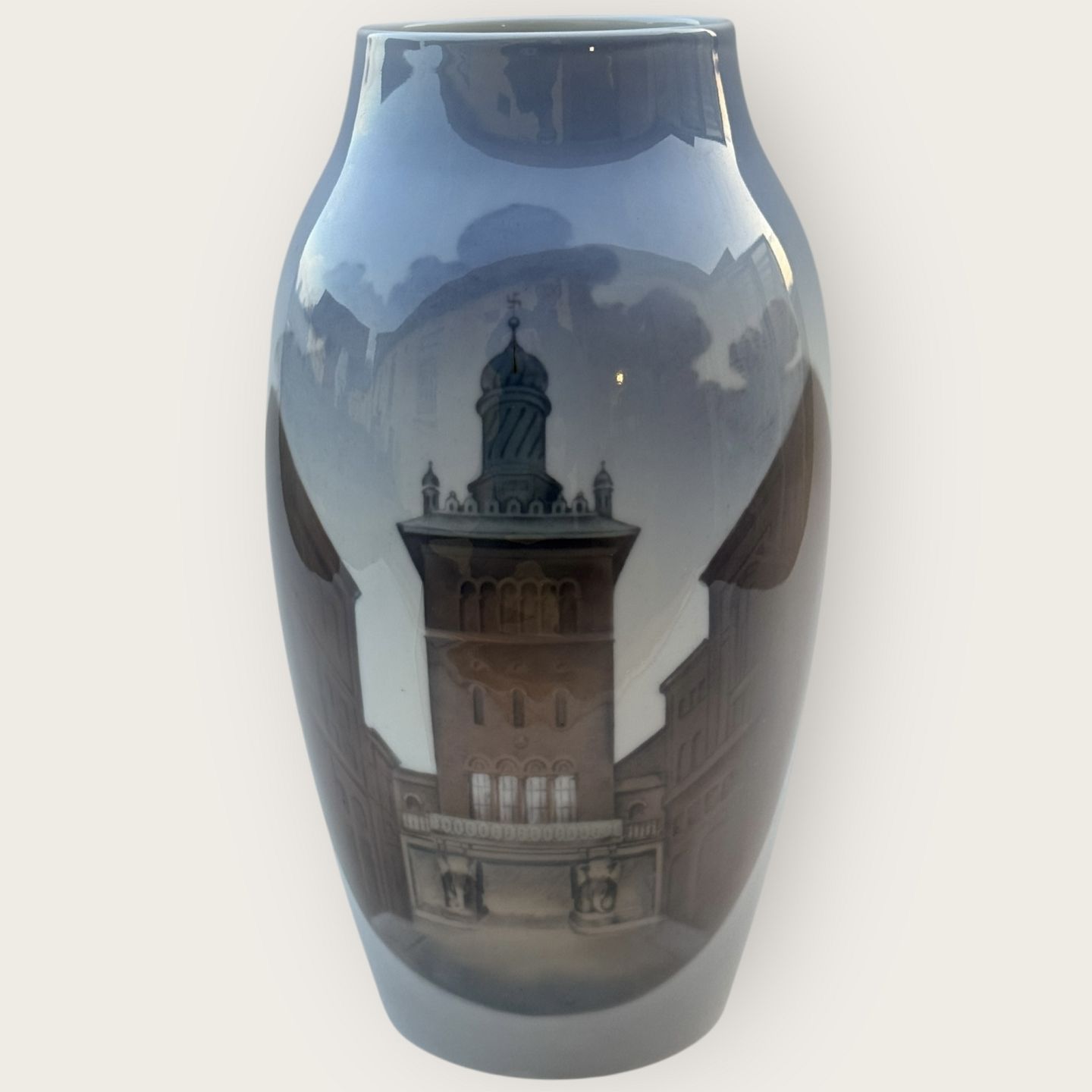 Bing & Grøndahl, vase med Carlsbergs elefantport, givet som jubilæumsgave til medarbejdere på Carlsberg #243, 24cm høj, 1.sortering *Pæn stand*Lager: 1