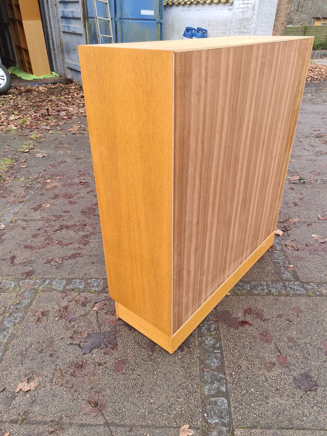 Reol i finéret eg med underskab og hessian beklædt bagbeklædning. Ydført hos HG Funiture i 1970'erne. Fremstår pæn og velholdt uden de store brugsspor.Højde 112 cm. Bredde 101 cm. Dybde 36 cm.