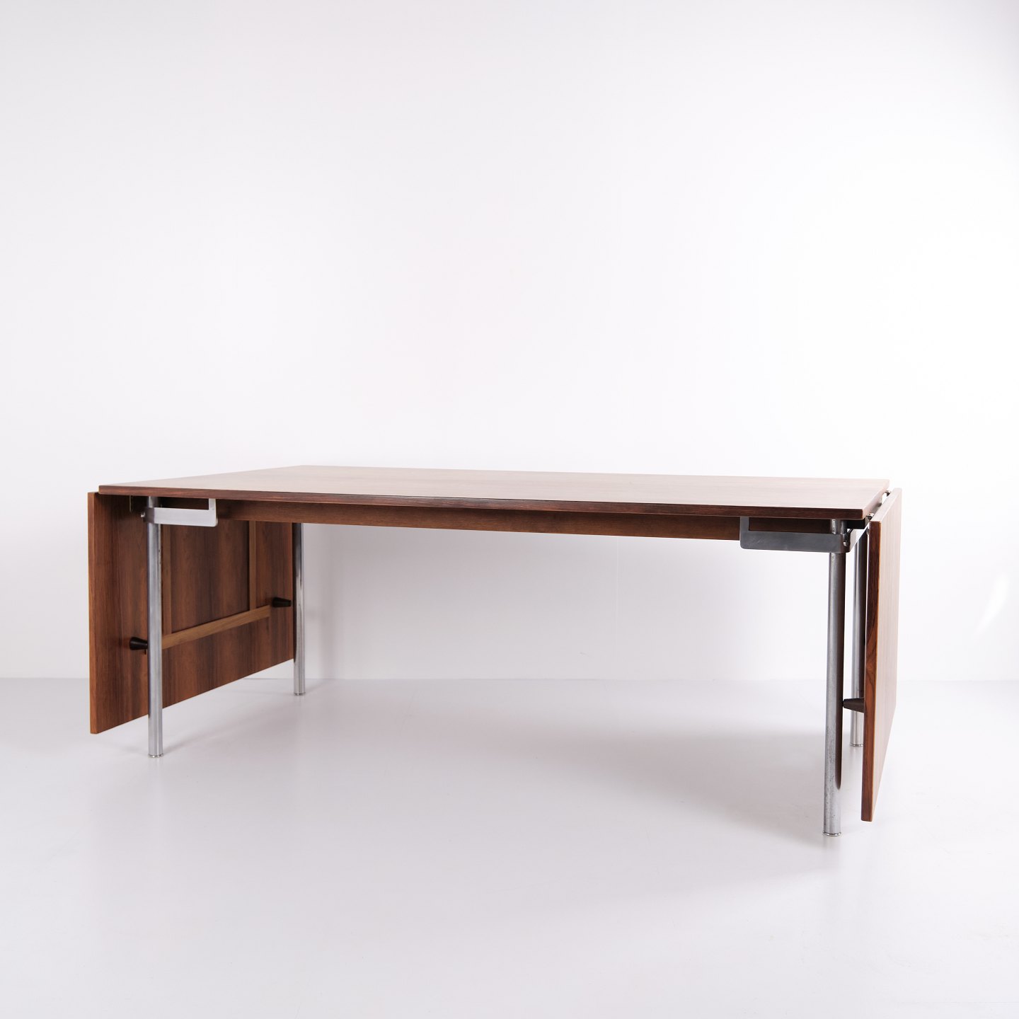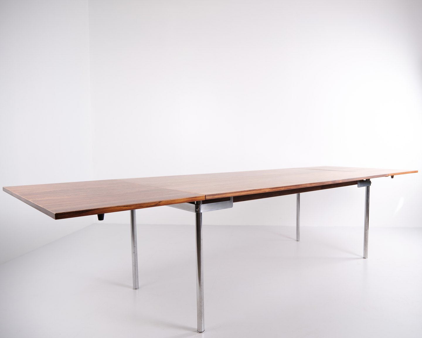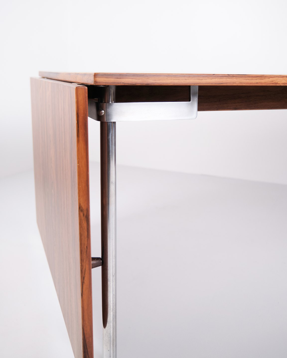 Spisebord model AT 319 af Hans J. Wegner for Andreas Tuck. Riopalisander med stålben og 2 tillægsplader. Dansk design fra 1960’erne.— Designer: Hans J. Wegner