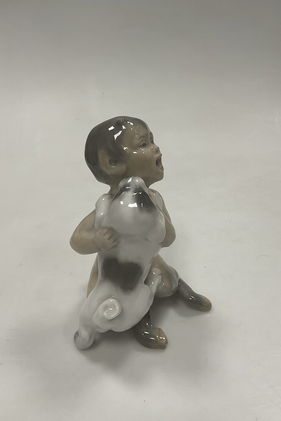 Royal Copenhagen Figur af Faun med hund No 2823. Mærket som 2. sortering. Måler 14,5 cmLager: 1