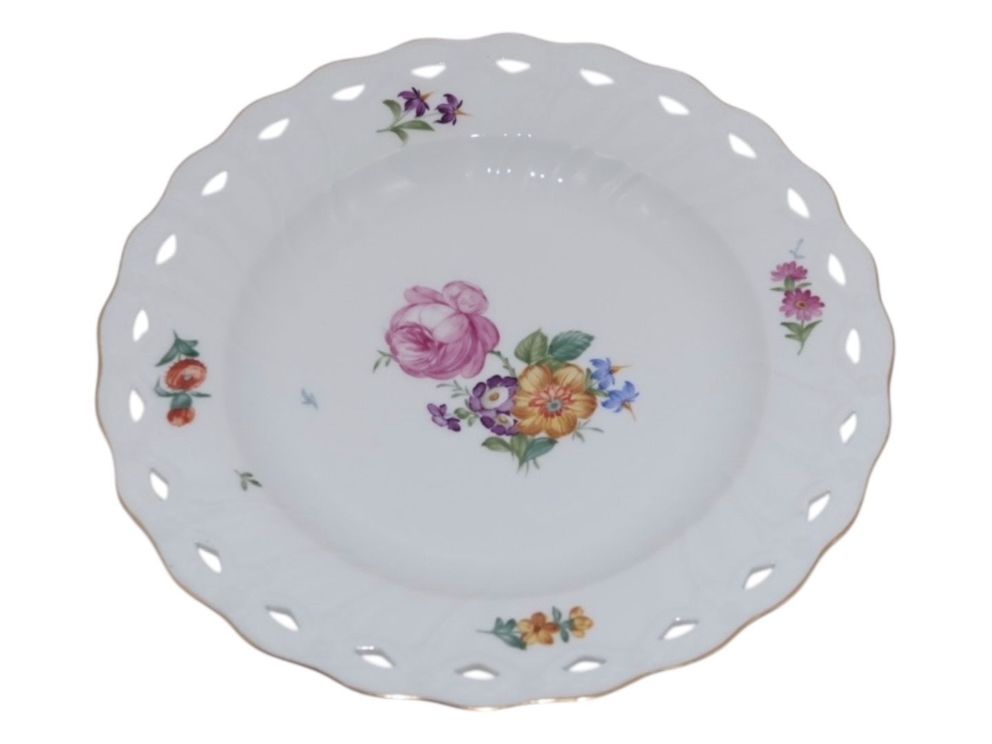 Royal Copenhagen Sachian Flower, rare dinner plate with pierced border.The factory mark shows, that this was produced between 1923 and 1928.