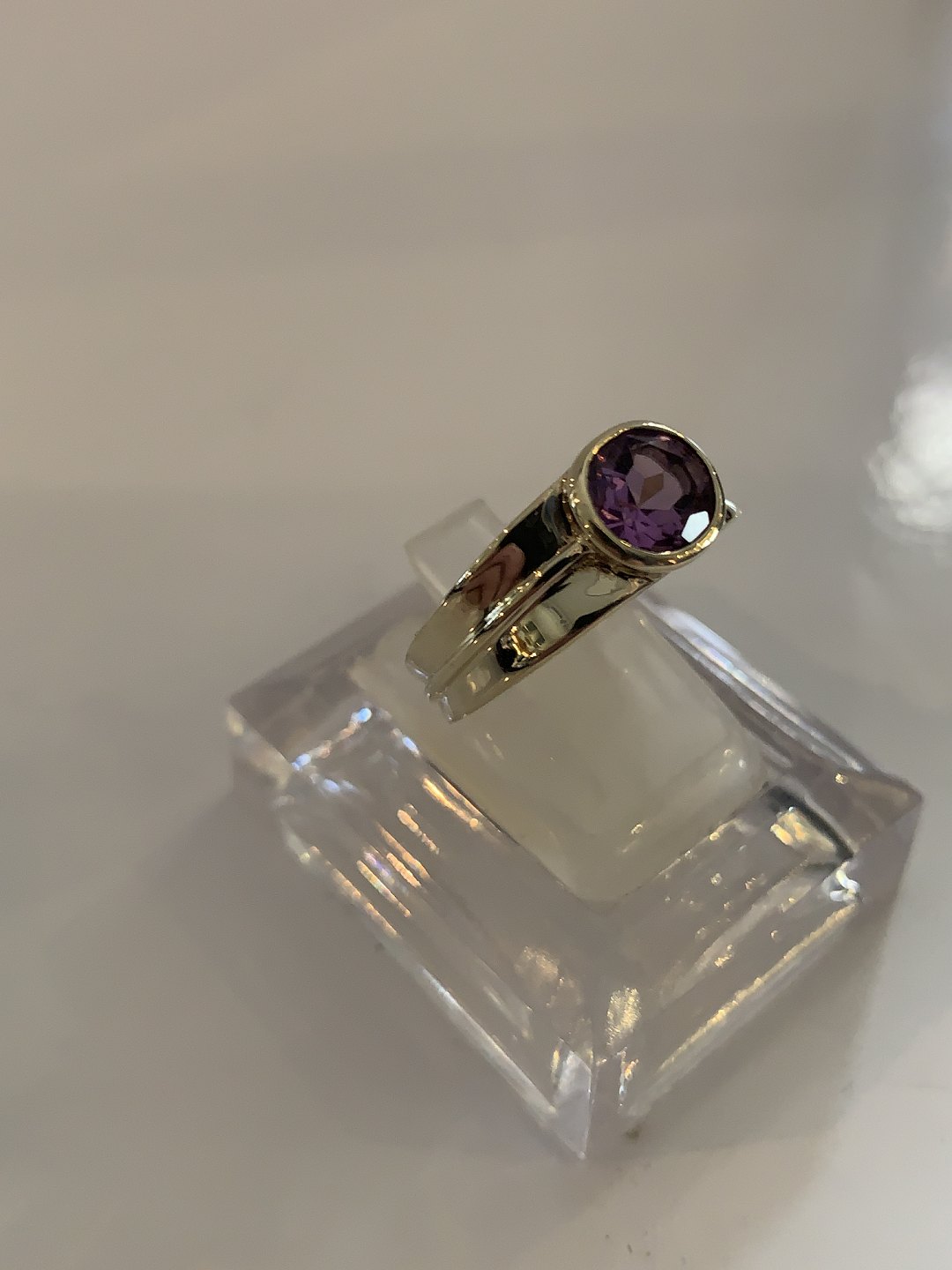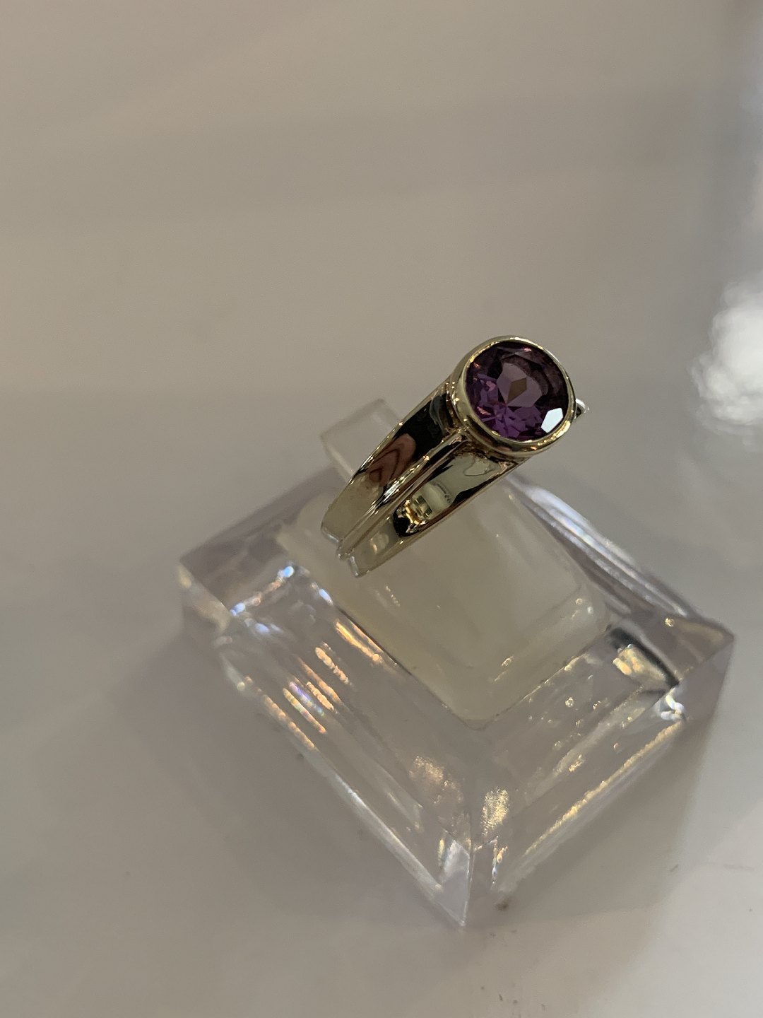 Vintage Damering med lilla sten 8 Karat GuldStemplet BEE 333