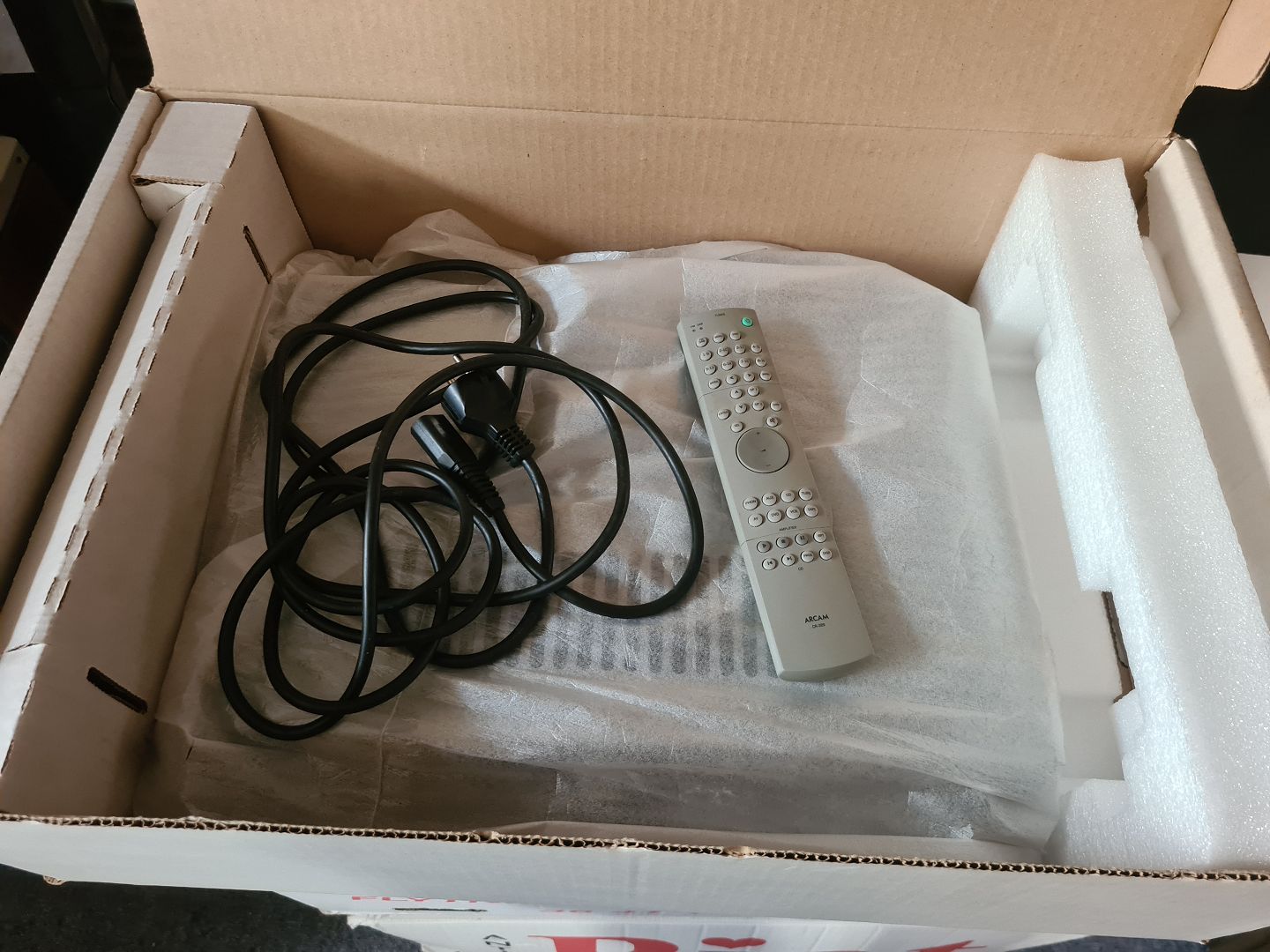 Integreret forstærker Arcam DiVA model A80. Testet og virker fint. Kommer med og i original emballage samt med strømførende kabel og fjernbetjening CR-389.
