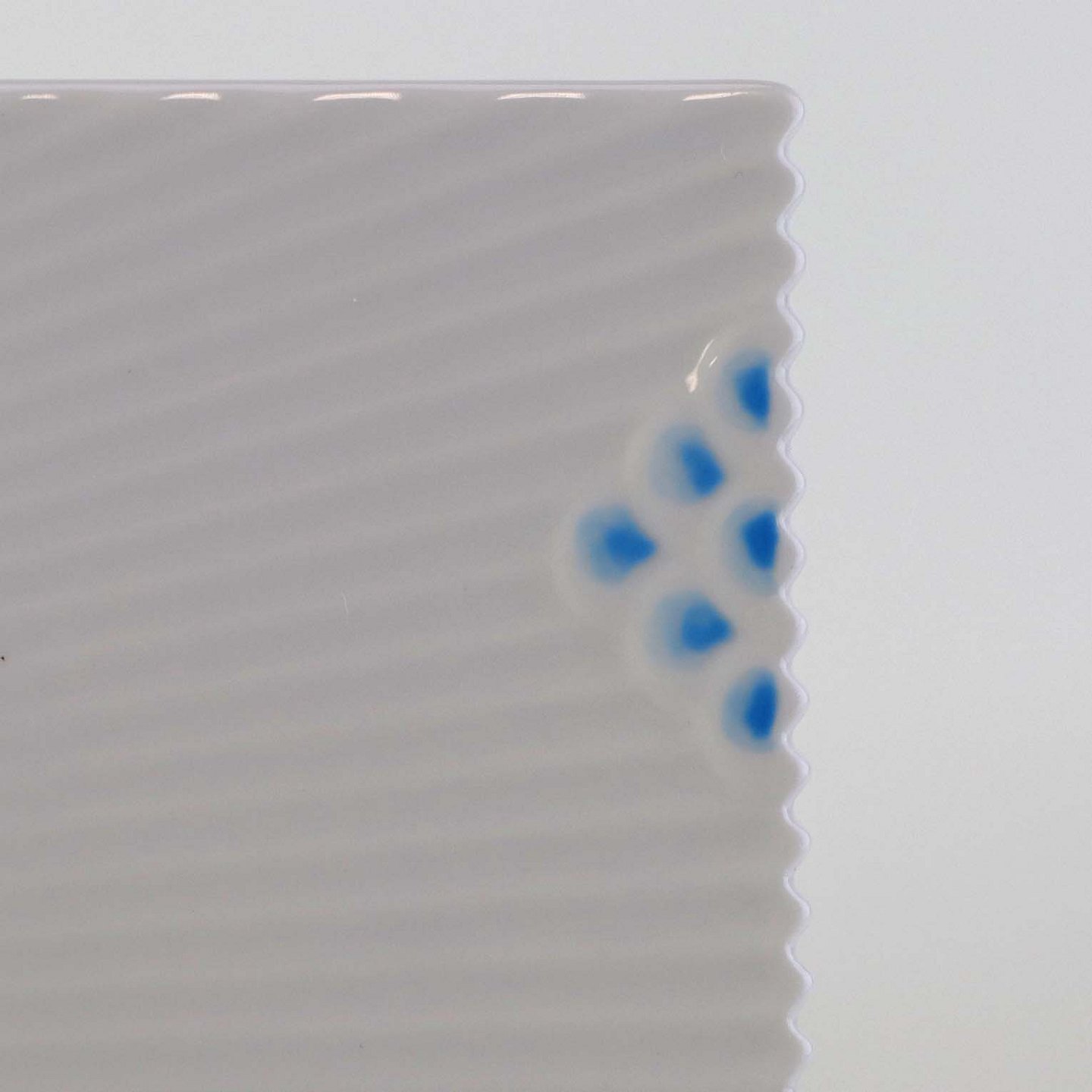 Service i glat porcelæn med let riflet kant og turkis dekoration