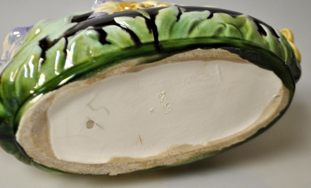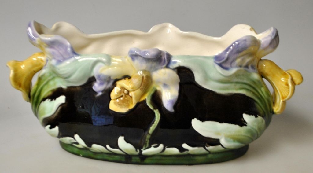 Majolica jardiniere, Tyskland, ca. 1900. Stemplet i bunden: 5853. H: 12 cm. L: 27 cm.Perfekt stand!