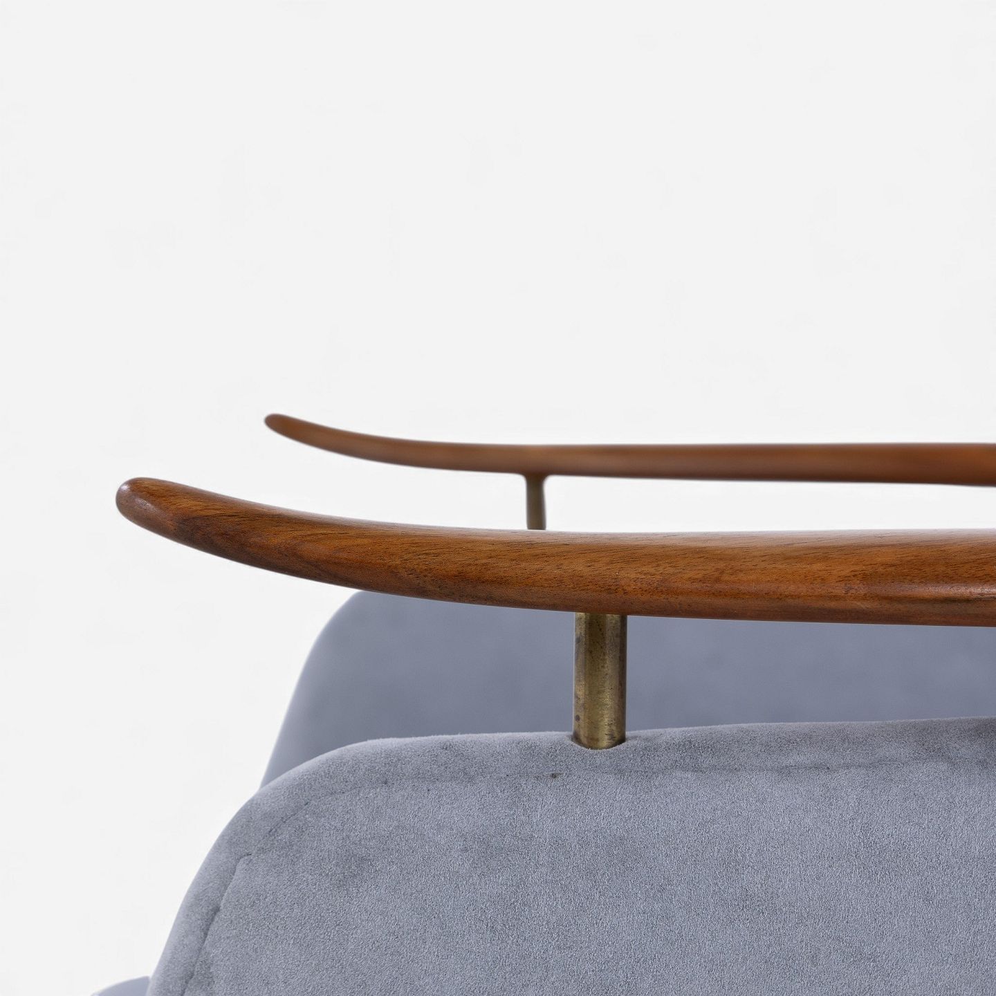 NV 53 - Lænestol i gråt 'Alcantara'-stof med stel i patineret valnød.