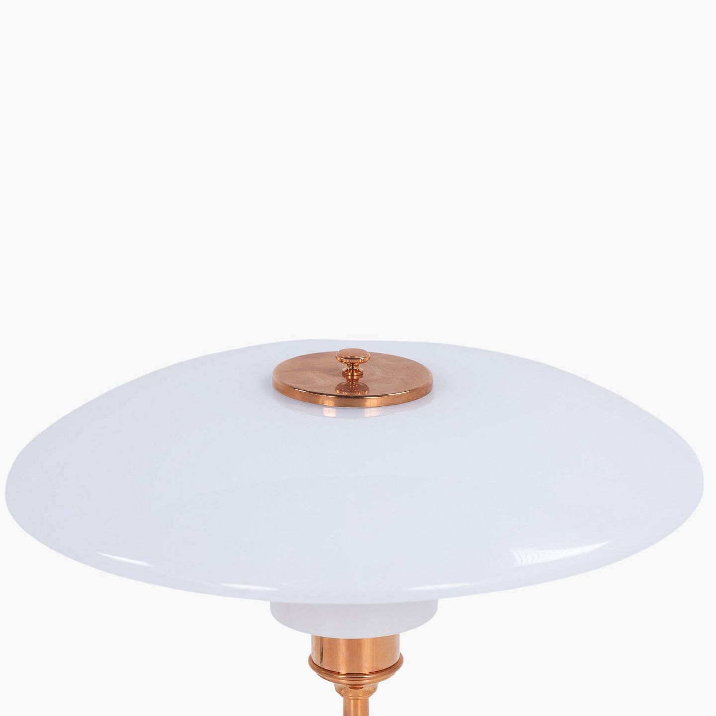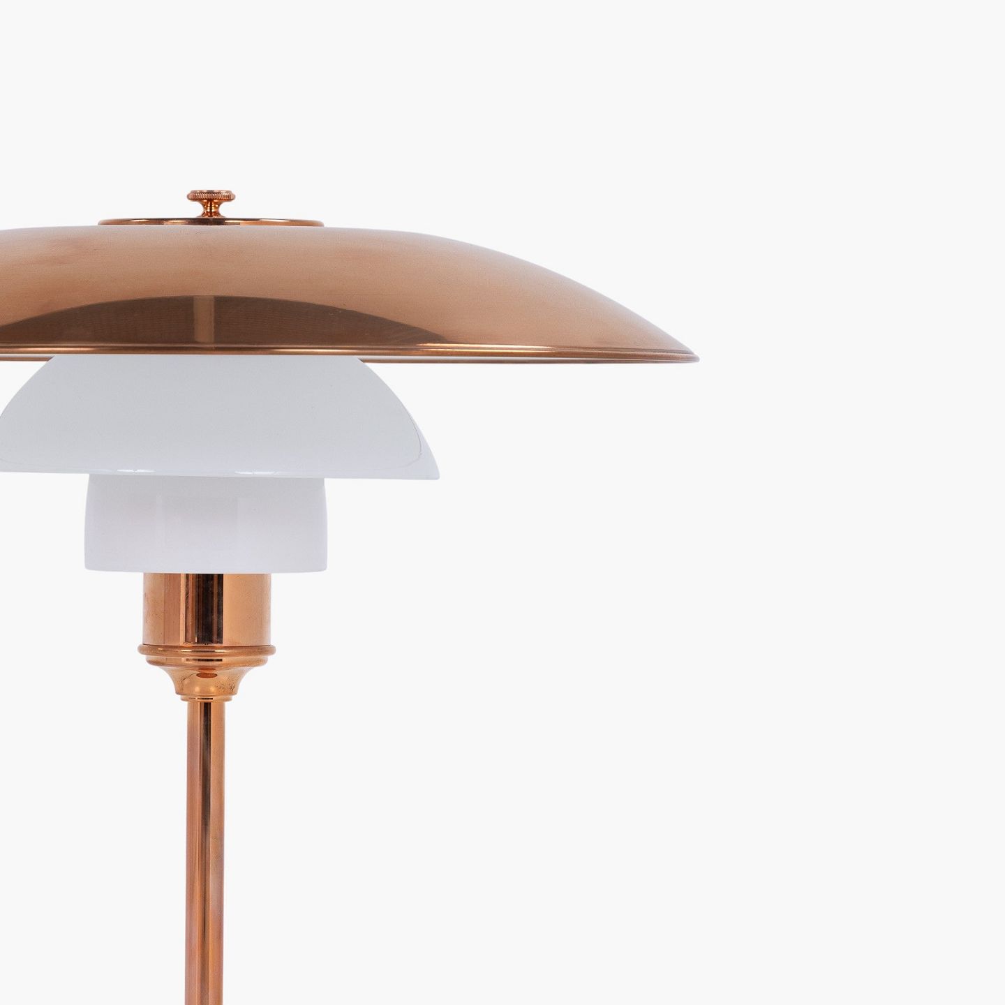 PH 3½-2½ - Bordlampe med overskærm i kobber/hvidt opalglas (begge skærme medfølger) og mellem- samt underskærm i hvidt opalglas. Jubilæumsudgave. Original kasse medfølger med certifikat.