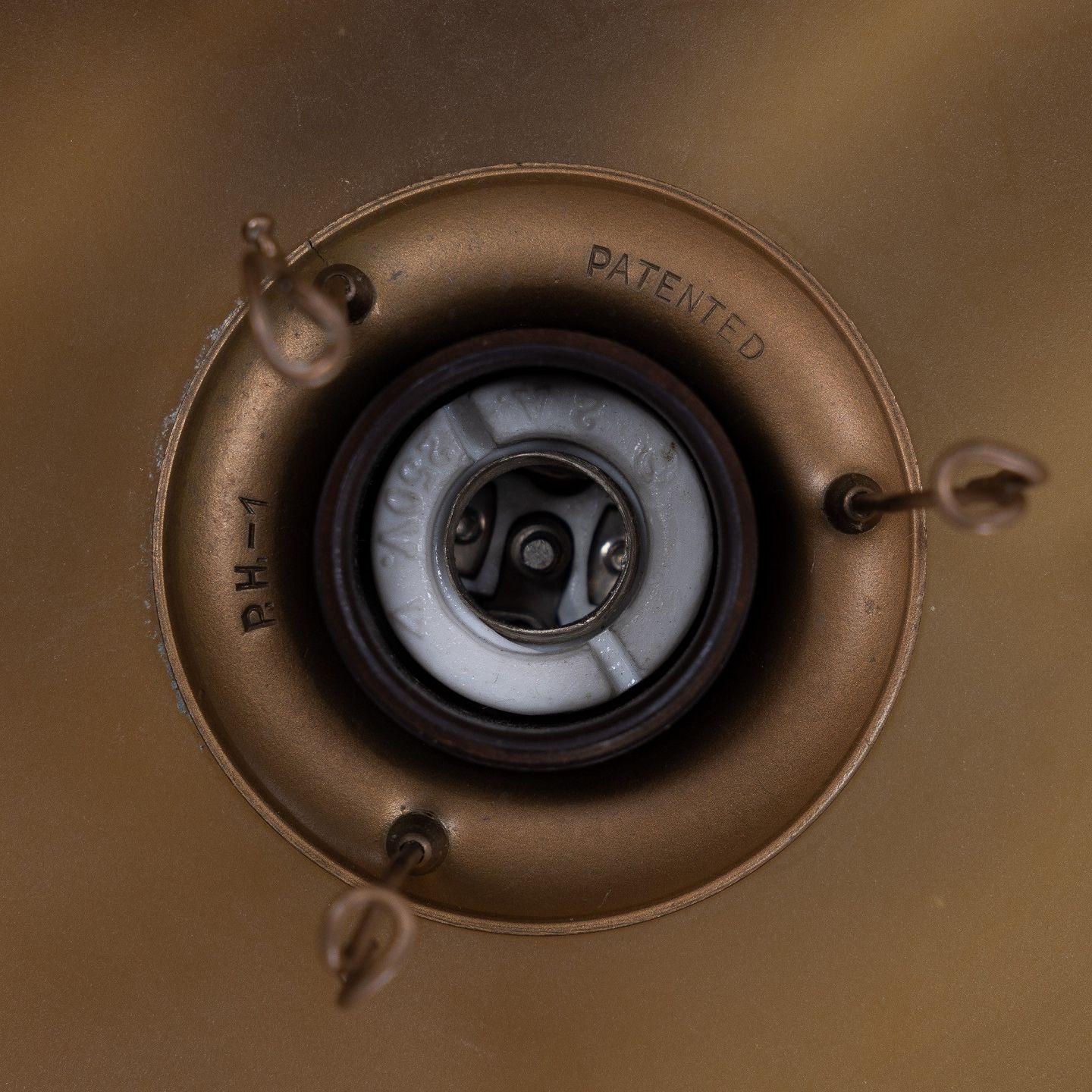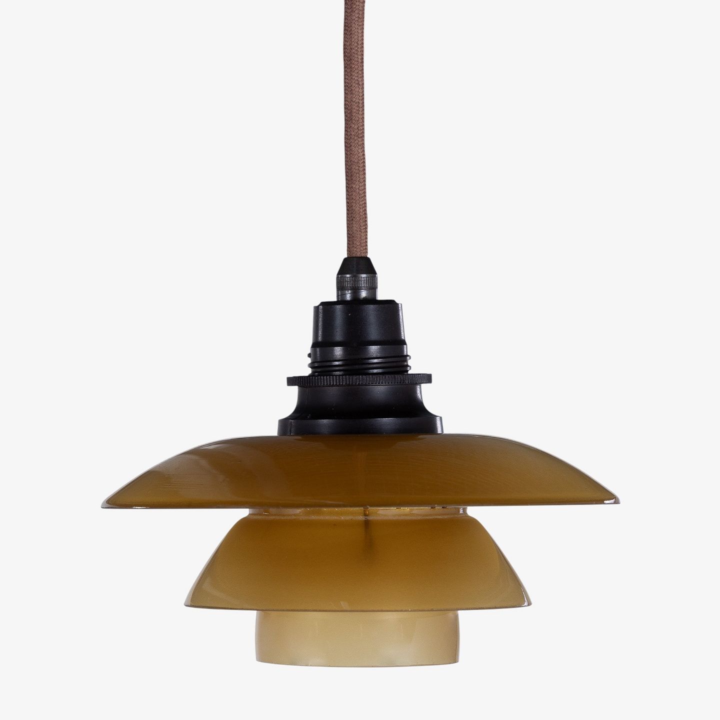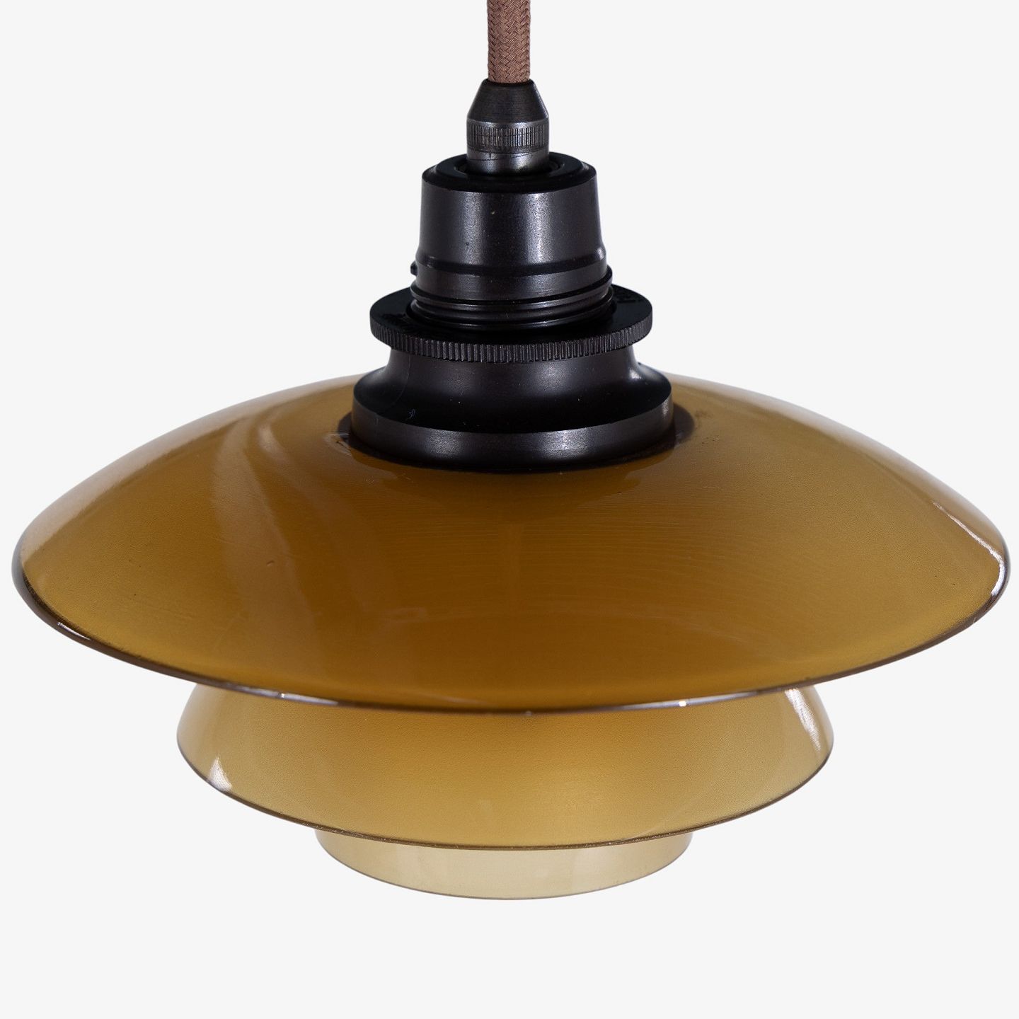 PH 1/1 - Pendel med ravfarvede glasskærme. Stemplet 'Patented'.