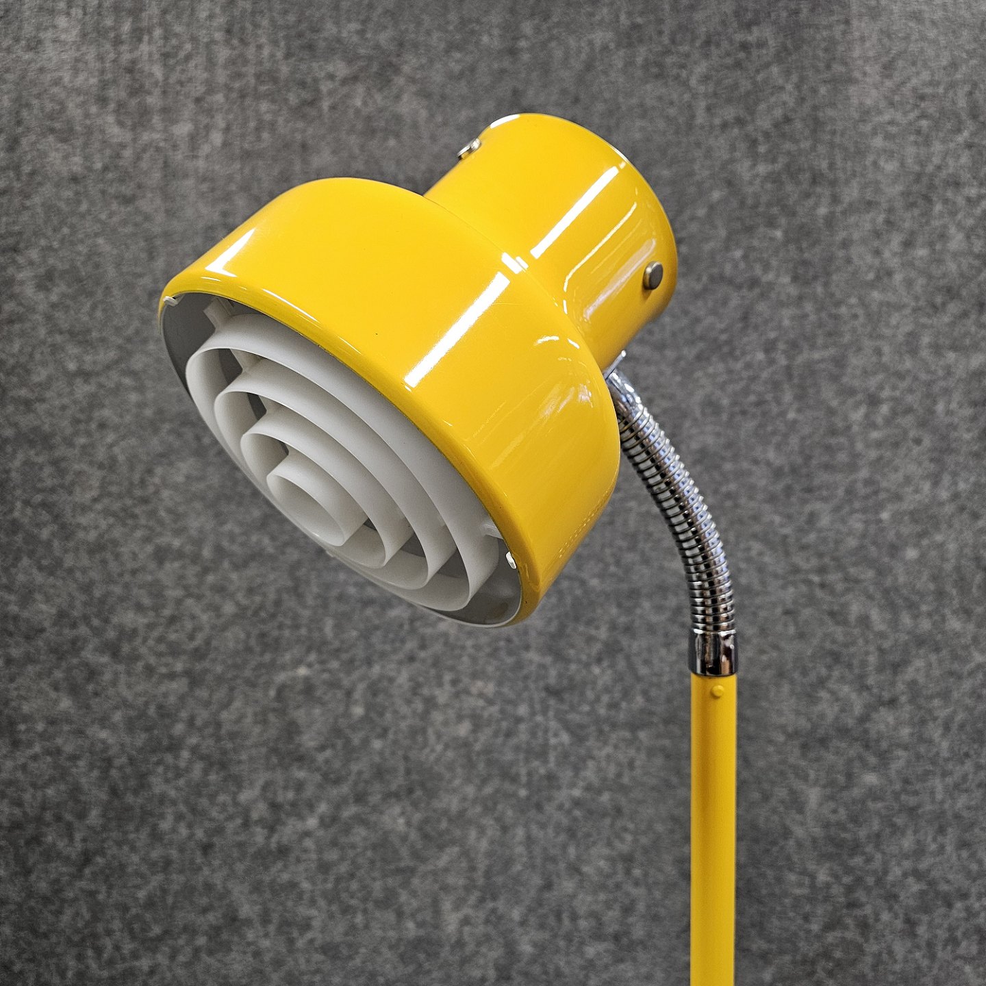 Bumling gulvlampe i gult lakeret metal med justerbar skærmDesigner Anders Pehrson