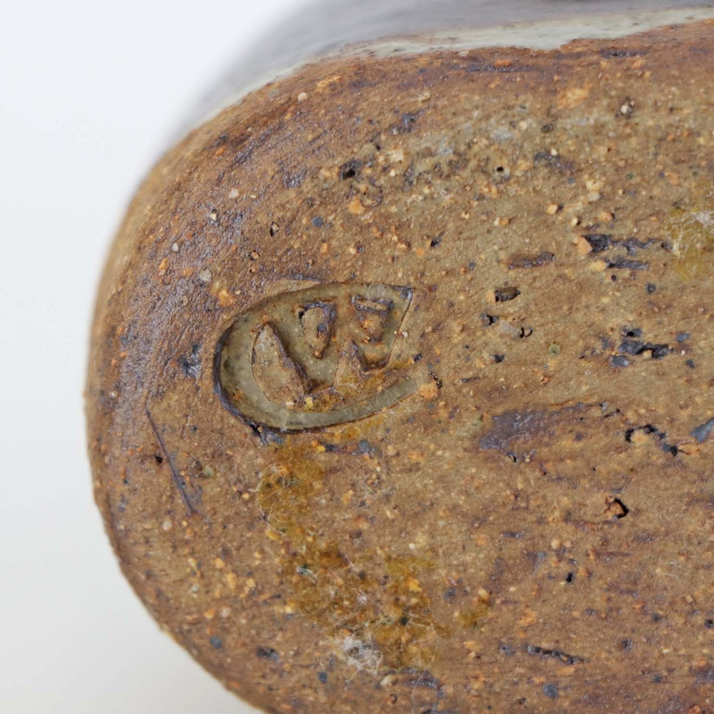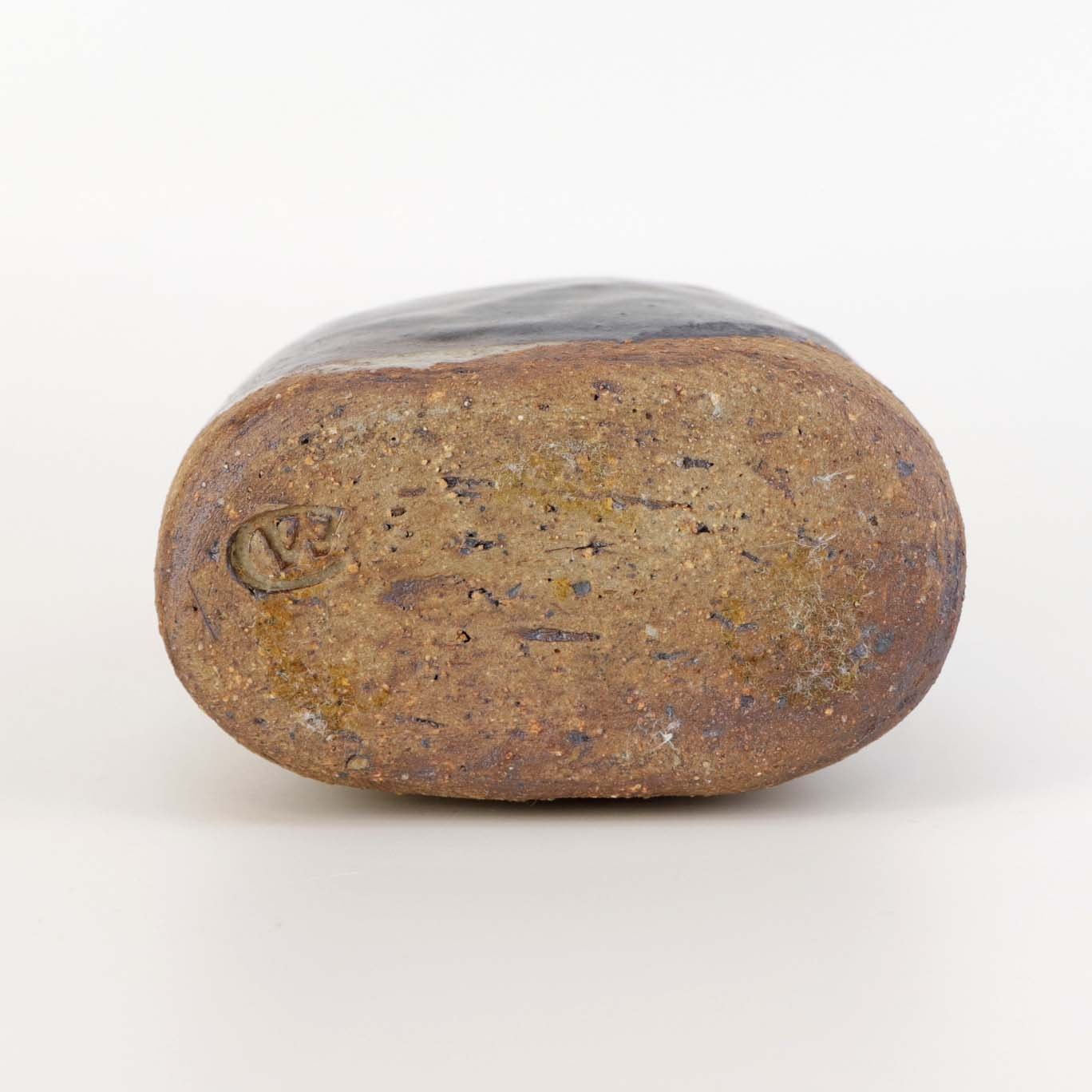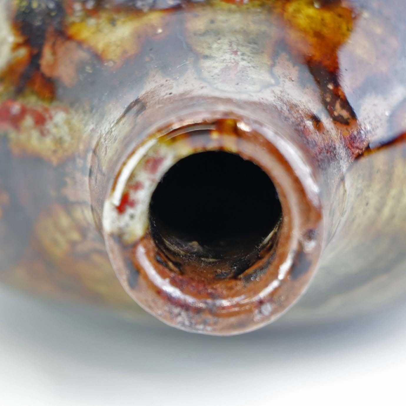 Lille flaskeformet vase i keramik med flerfarvet glansfuld og mat glasur.Formgiver Conny Walther