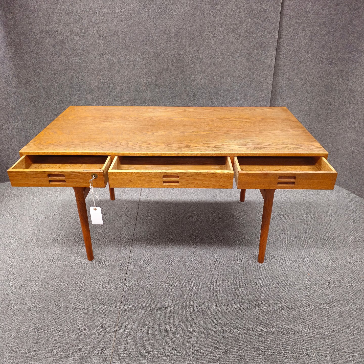Skrivebord model ND93 i eg med tre skuffer, venstre skuffe med nøgleDesign Nanna Ditzel