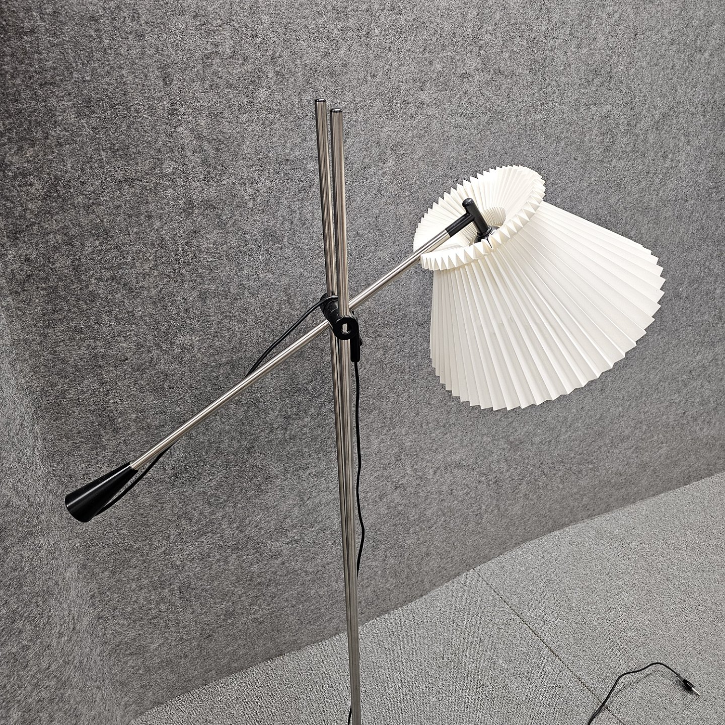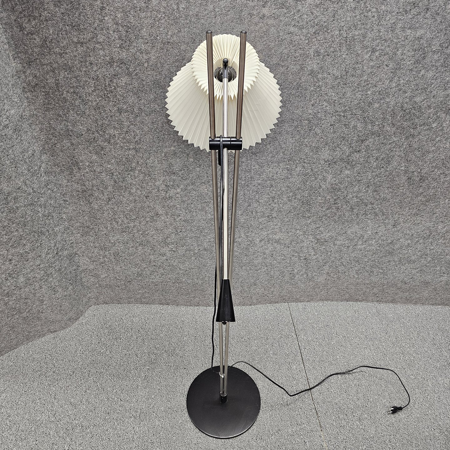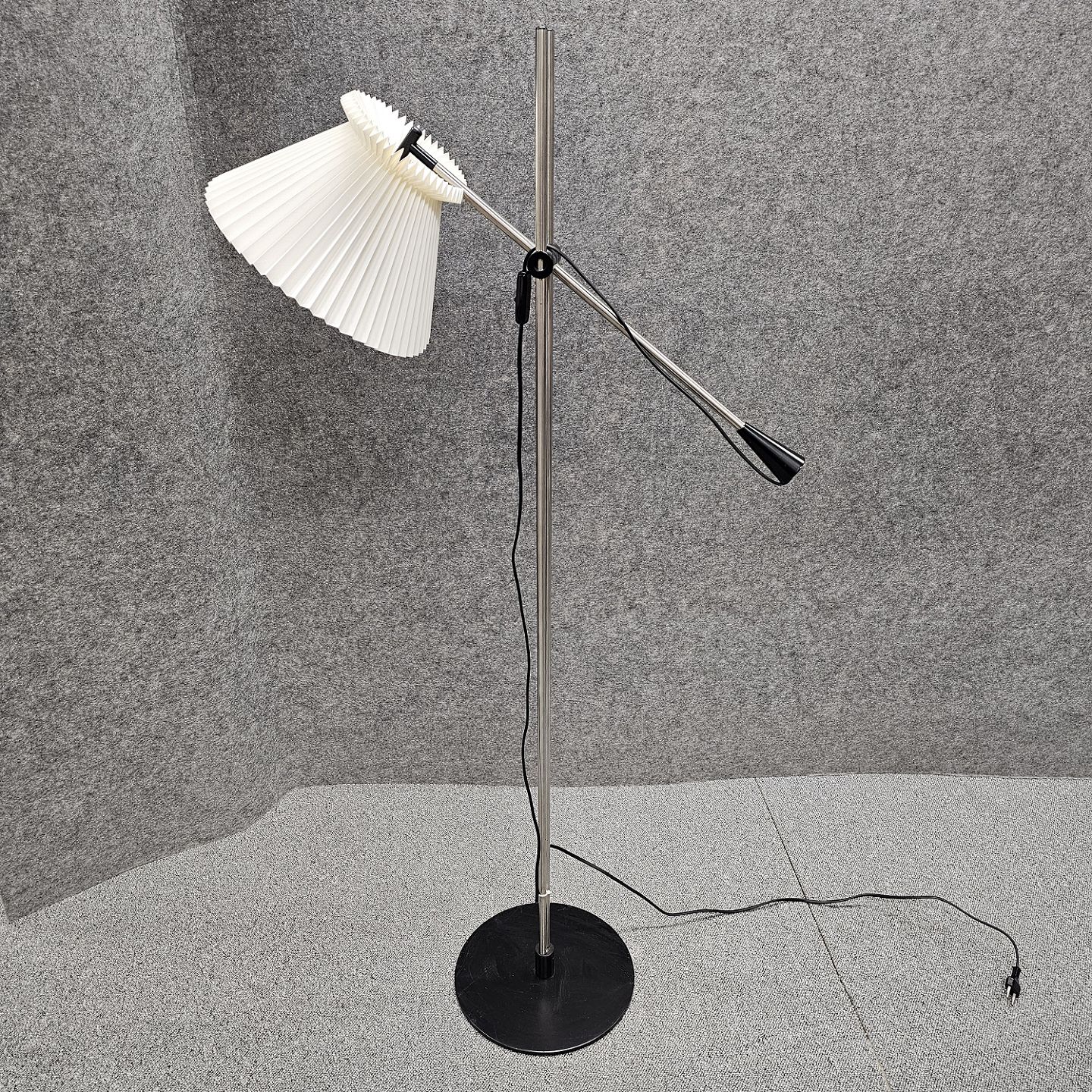 Gulvlampe i metal med sort fod, sort ledning og hvid skærmModel 323