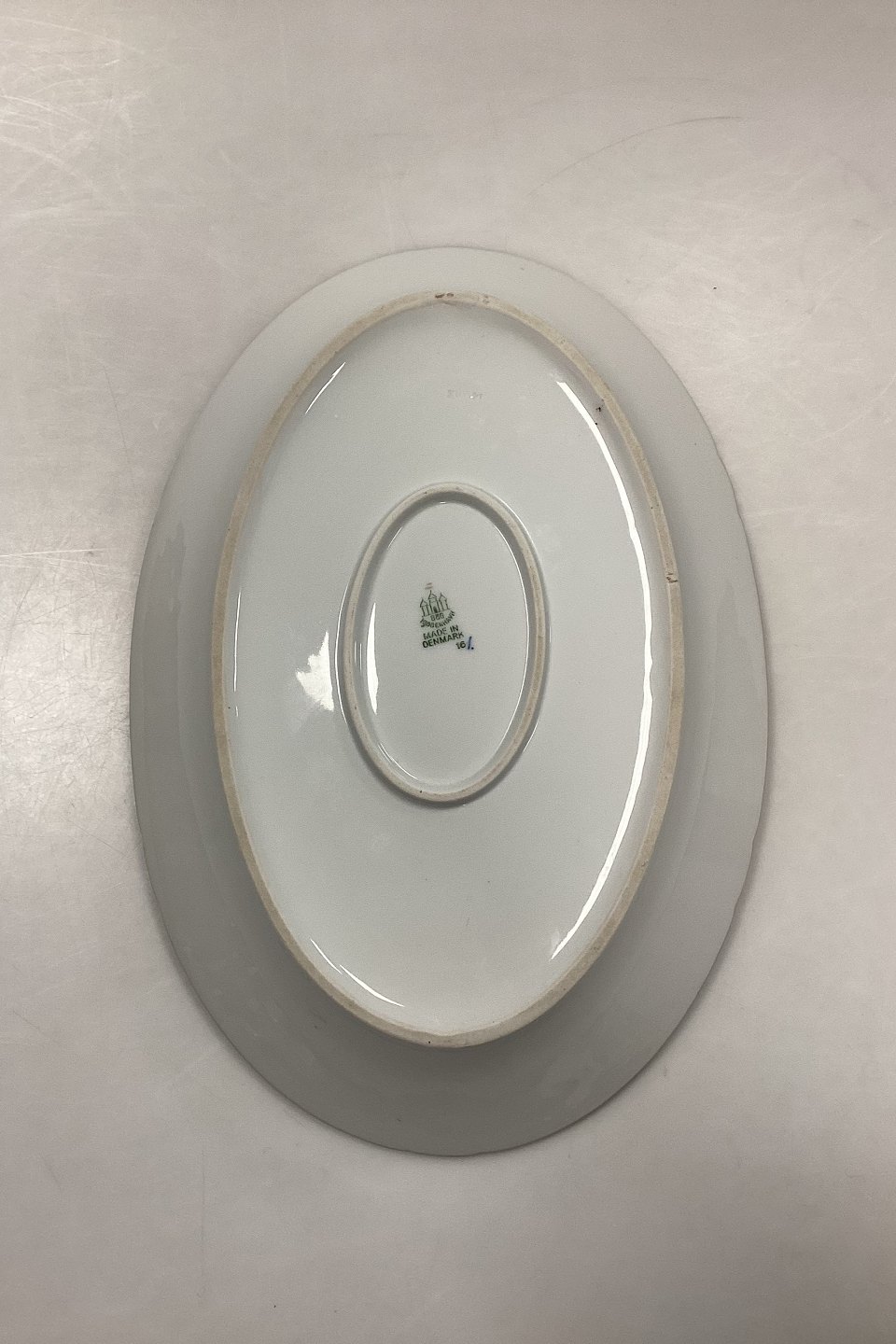 Bing og Grøndahl Dickens Sommerfugl med Guld, Ovalt Fad No. 16. Måler 34,5 cm x 24 cm / 13,58 in. x 9,44 in.Lager: 1
