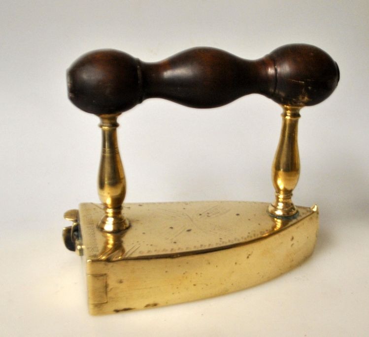 Brass iron, 19th century. Denmark. Stamped. With engravings. With wooden handle. L.: 14 cm. H.: 12.5 cm.Perfect condition!