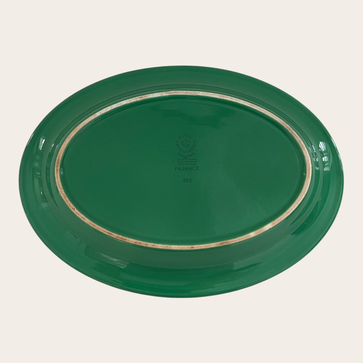 Royal Copenhagen, Aluminia, Tallerken #085, Grøn, 22cm lang, 16cm bred, Design Ursula Munch Petersen *Pæn stand med lette brugsspor*Lager: 1