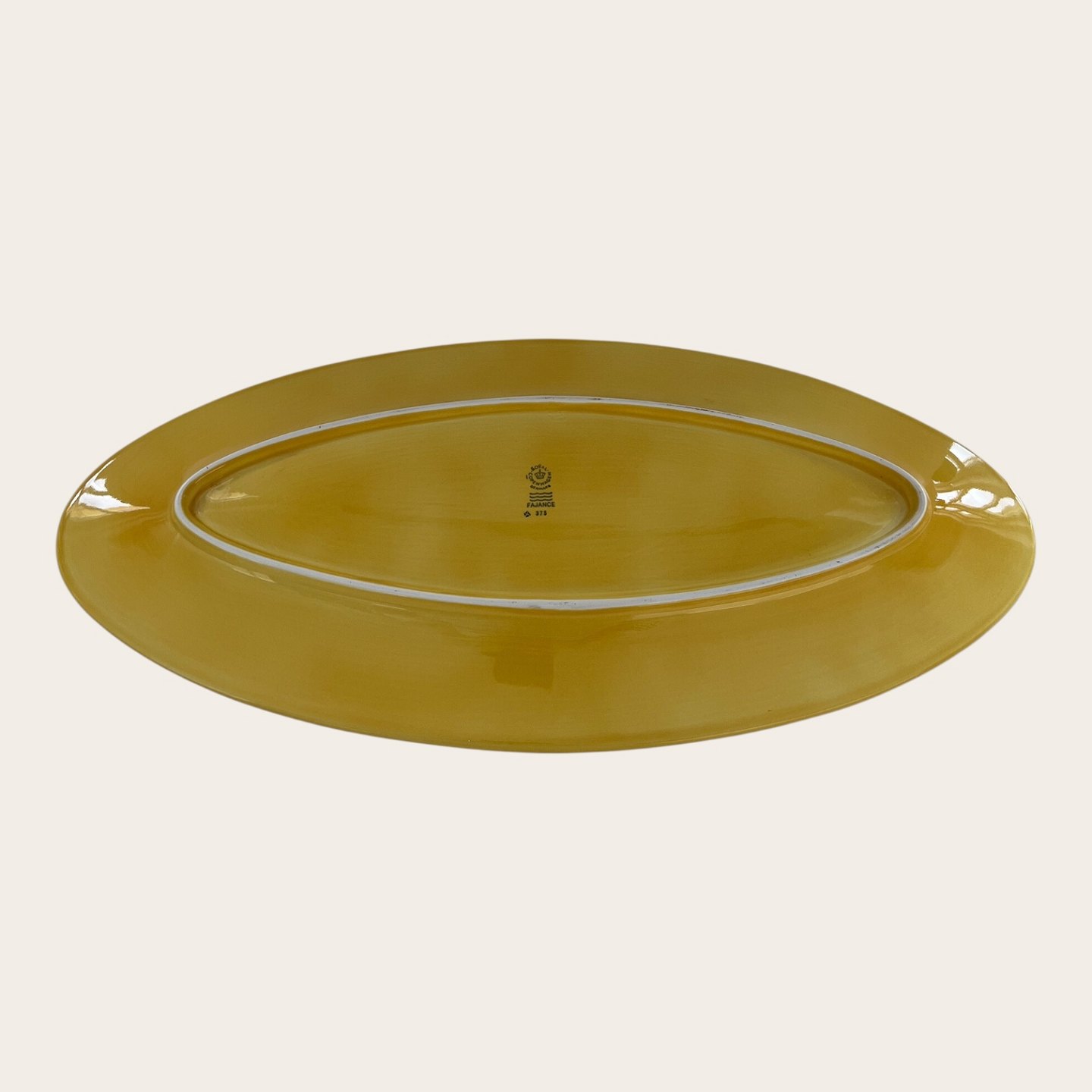 Royal Copenhagen, Aluminia, Stort fad, Gul #375, 1. sortering, 57,5cm lang, 26cm bred, Design Ursula Munch Petersen *Pæn stand*Lager: 1