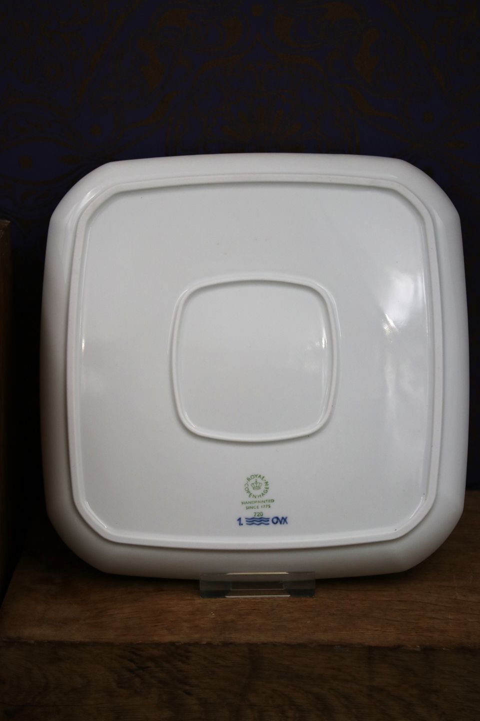 Royal Copenhagen Musselmalet Halvblonde firkantet tallerken.20,5x20,5cm. Dekorationsnummer 720. 2.sort.